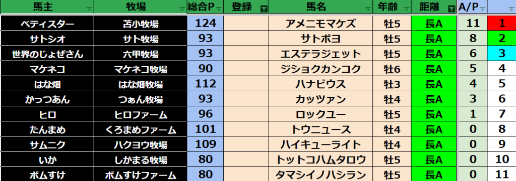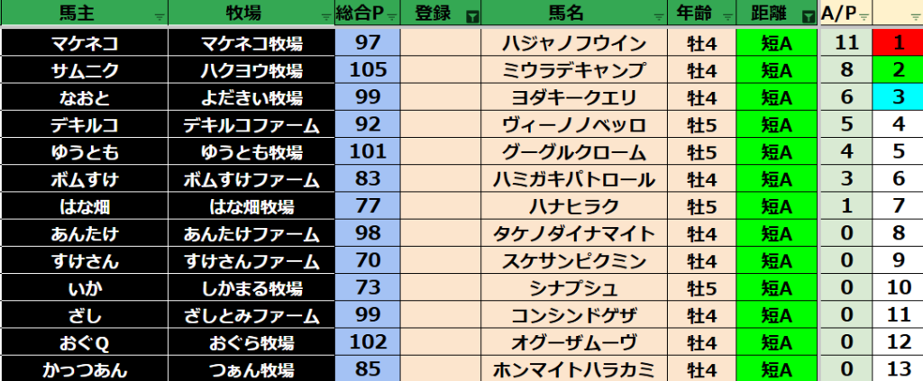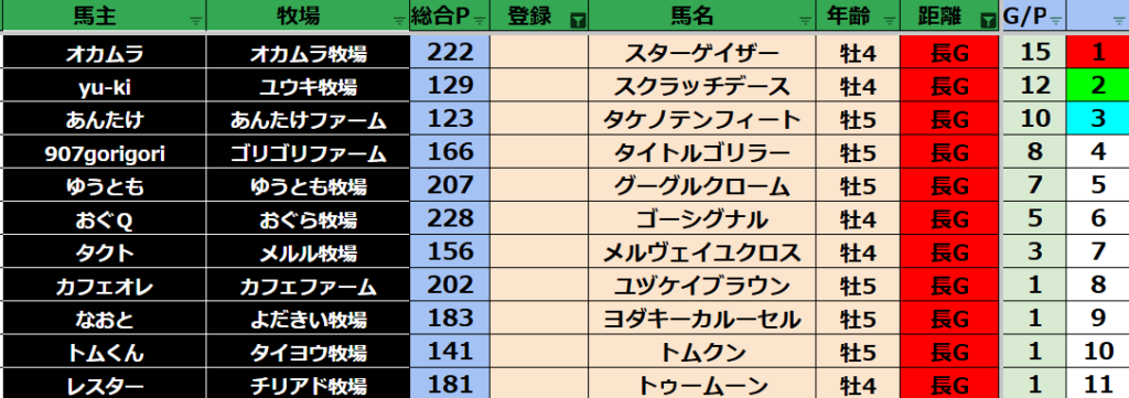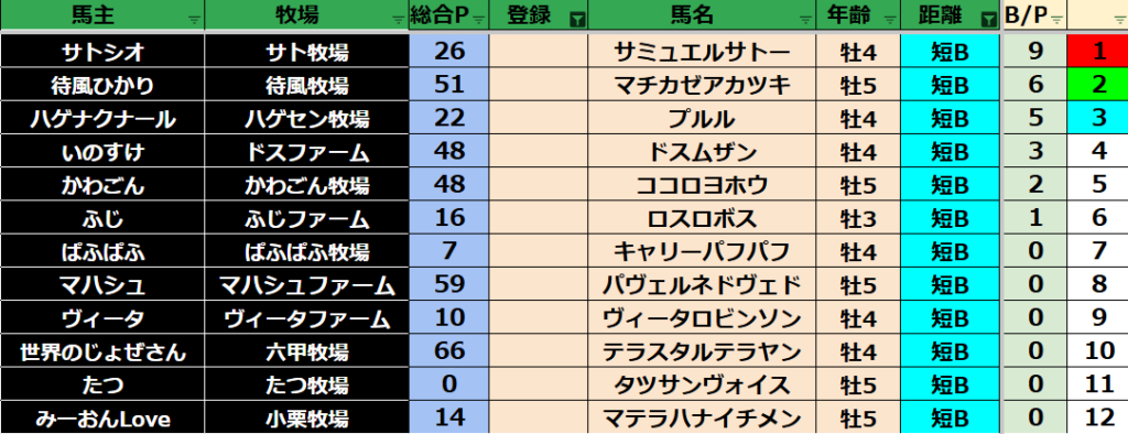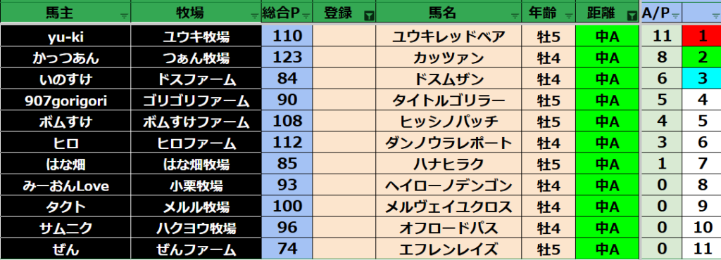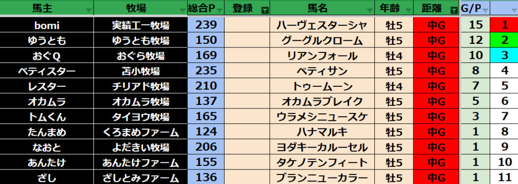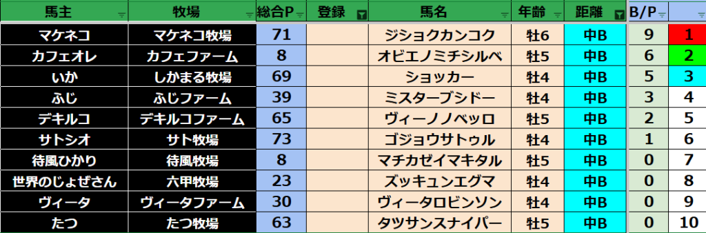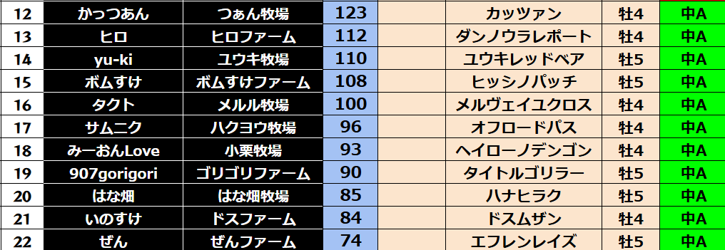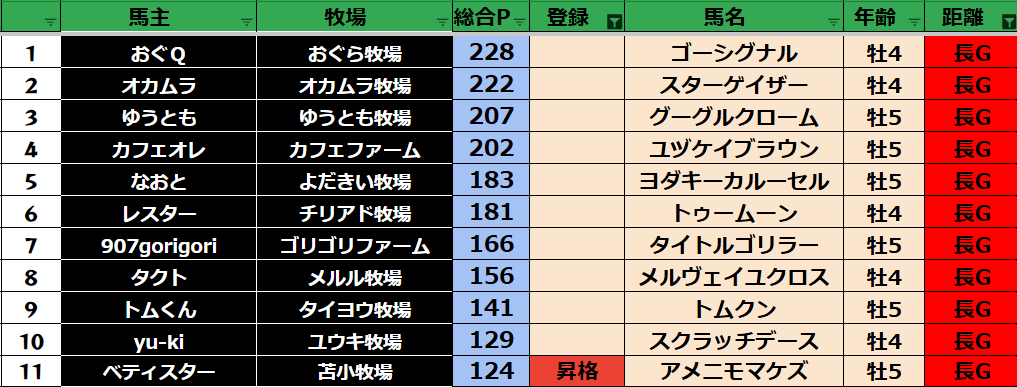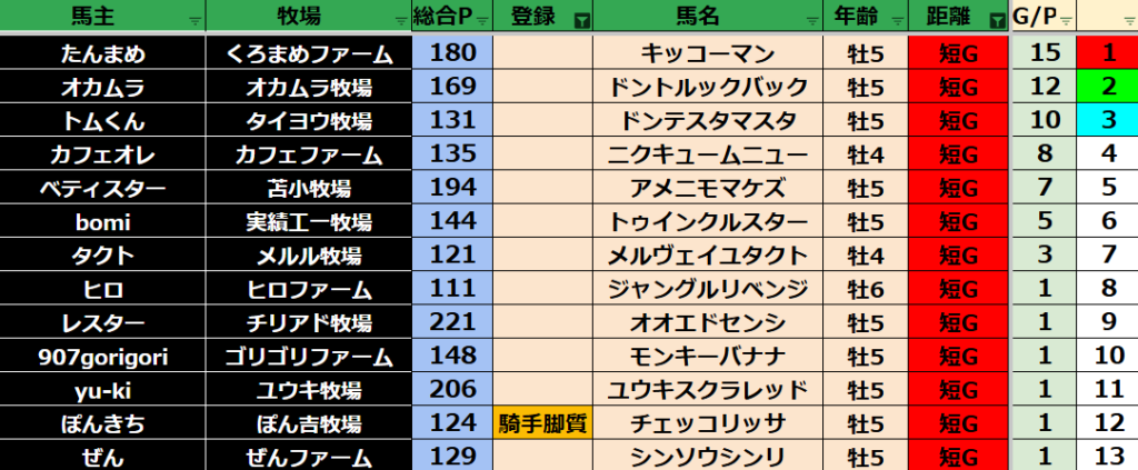 ゲーム ダビスタ 【ダビスタSwitch】suke3BC season5!! 7月1週目 結果発表!! 2025年7月8日 2025年7月8日 Facebook postはてブLINEPocketFeedly 先週の結果の方まいります! Contents 【ダート結果】 【ダートランキング】 【短距離結果】 【短距離ランキング】 【中距離結果】 【中距離ランキング】 【長距離結果】 【長距離ランキング】 【馬主総合ランキング】 Facebook postはてブLINEPocketFeedly