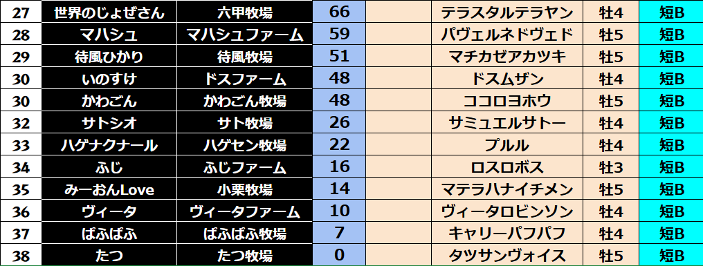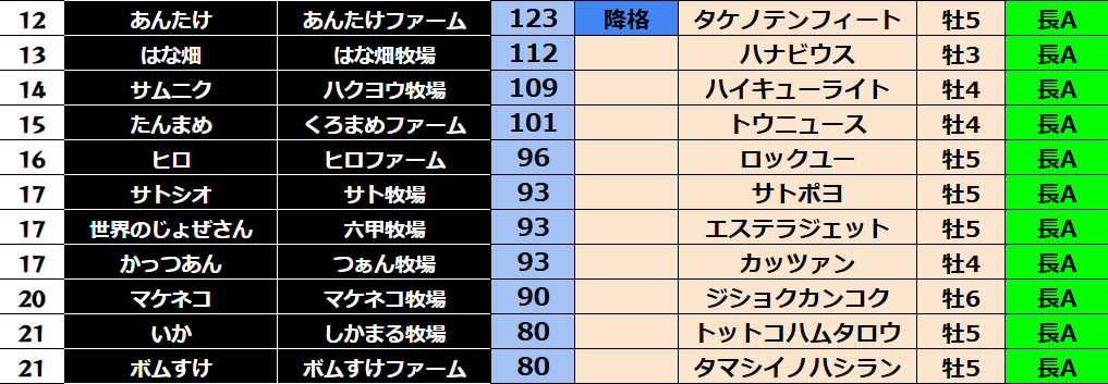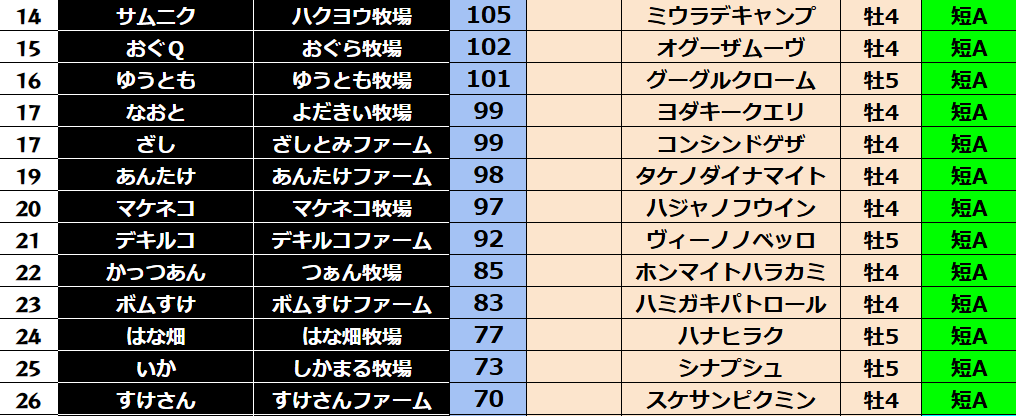 ダビスタ 【ダビスタSwitch】suke3BC season5 2月3週目 クラス振り分け確定! 今週のクラス分けとなります! 参加馬主:35名 全登録馬:125頭 ダート:32頭 短距離:34頭 中距離:29頭 長距離:30頭 【ダー...