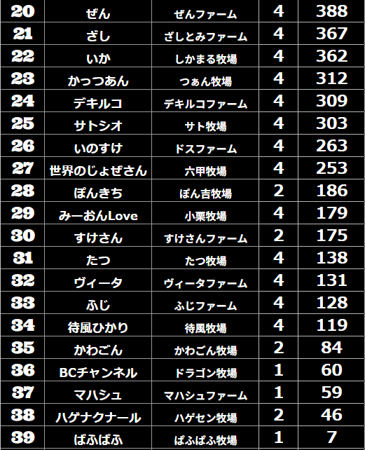 ダビスタ 【ダビスタSwitch】suke3BC season2 8月4週目 クラス振り分け確定! 今週のクラス分け発表です。 【8月4週目】 参加馬主:78名 全登録馬:301頭 ダート:75頭 長距離:75頭 中距離:75頭 短距離:7...