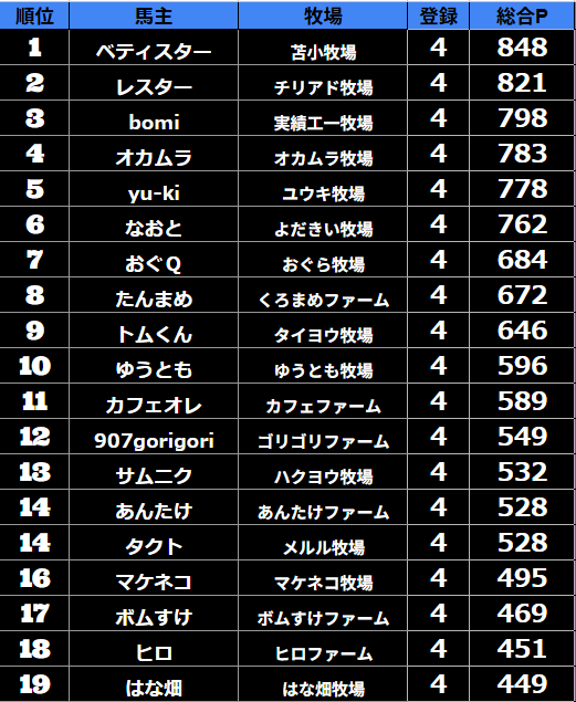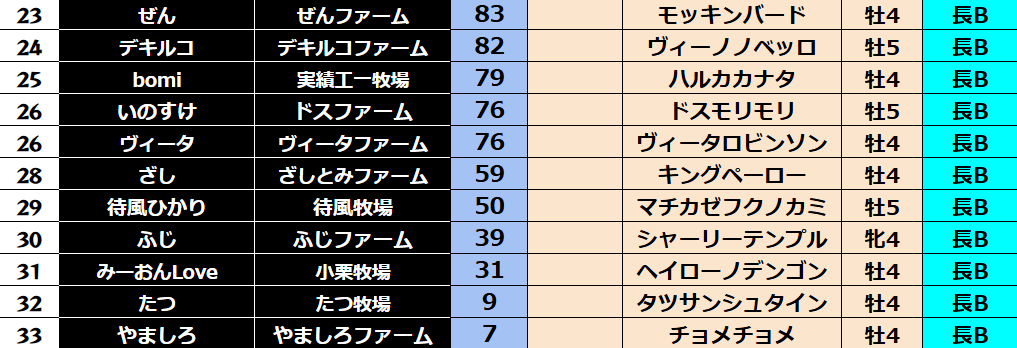 ダビスタ 【ダビスタSwitch】suke3BC season4 !! 6月3週目 結果発表!! 遅くなりました! 6月3週の結果になります! 【先週のシャンパラー🍾】 LULAさん(雀魂) ぺこさん(スト6) ざしさん(ダビスタ) うま...