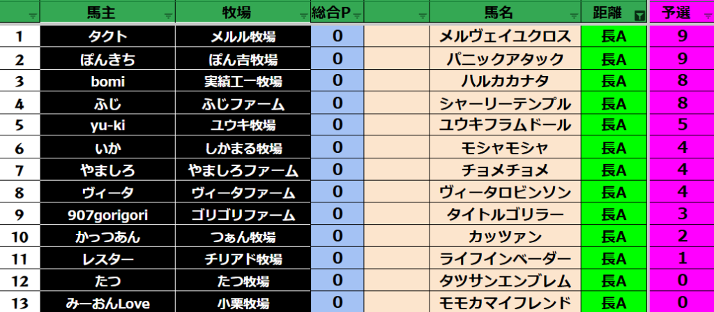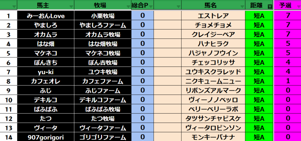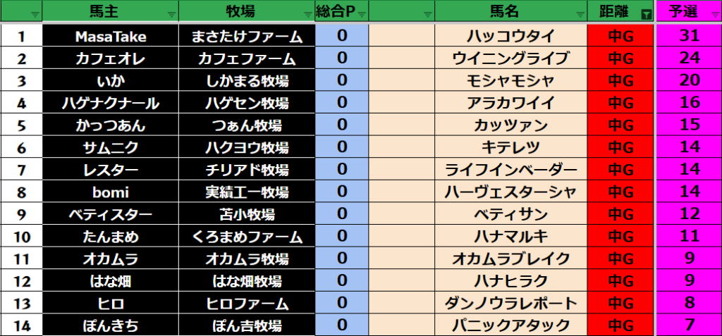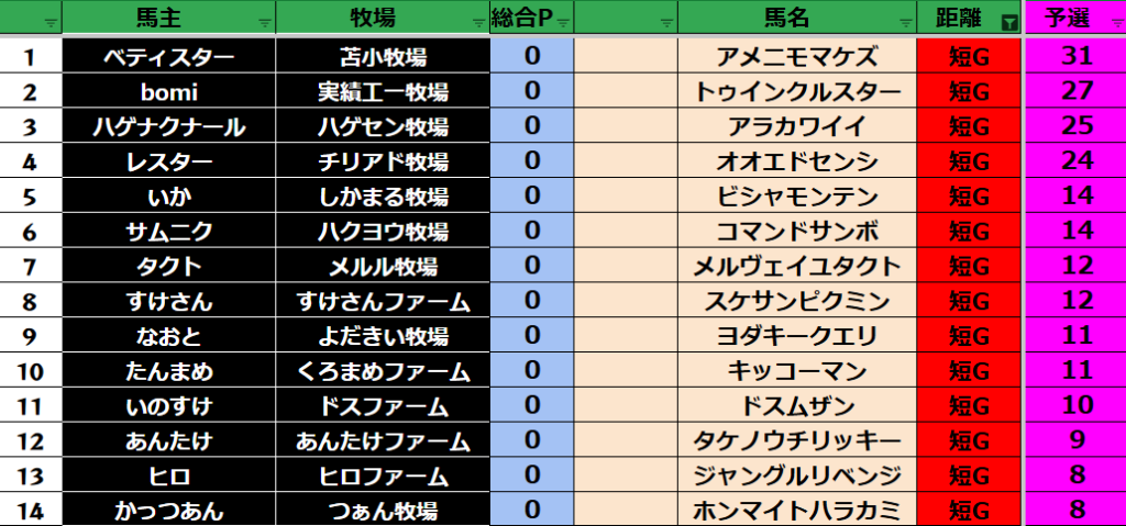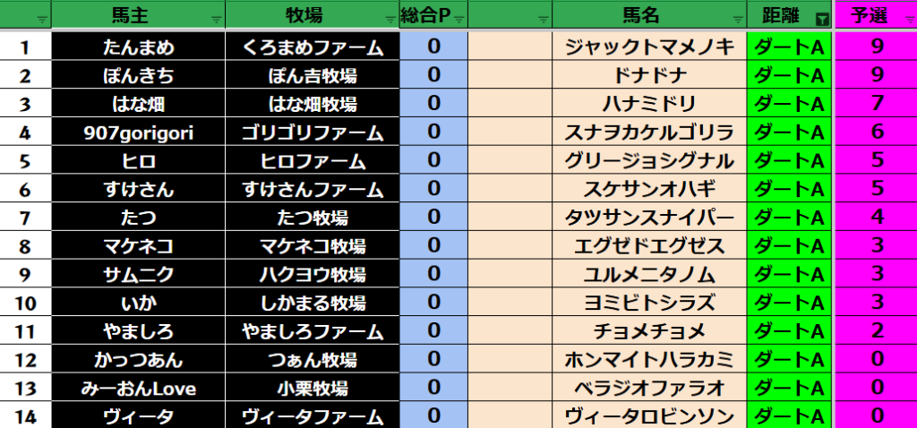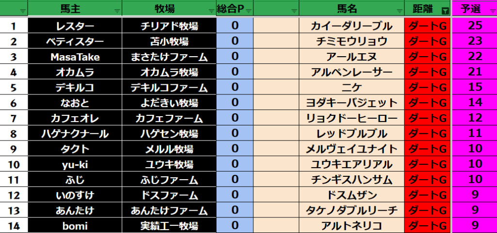 予選のポイントはリセットとなります!