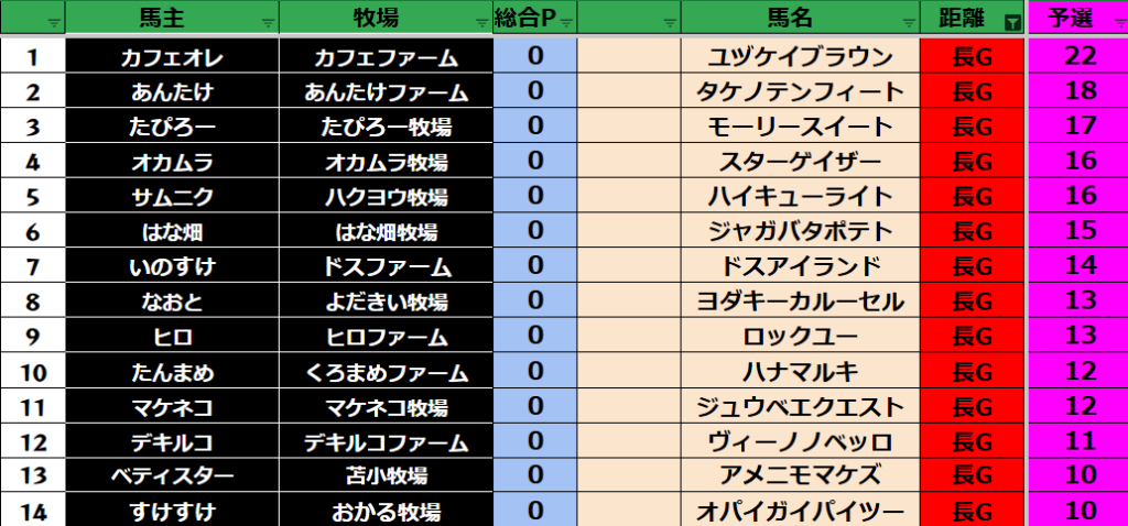 参加馬主:31名