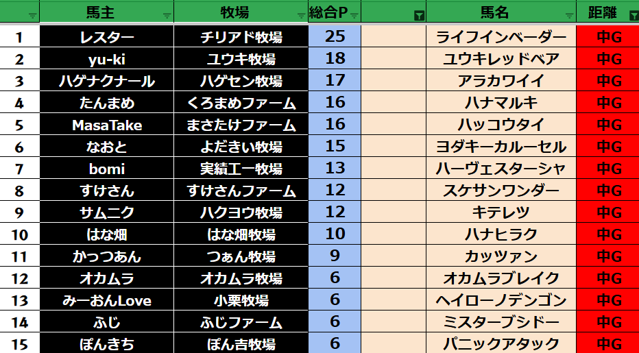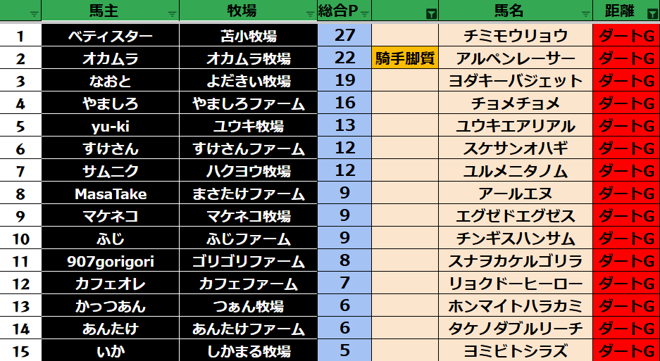 ダビスタ 【ダビスタSwitch】suke3BC season5!! 5月2週目 結果発表!! 先週の結果の方まいります! 【ダート結果】 【ダートランキング】 【短距離結果】 【短距離ランキング】 【中距離結果】 【中距離ランキン...