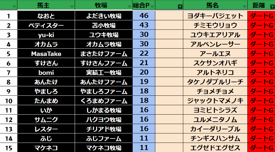 ダート:29頭