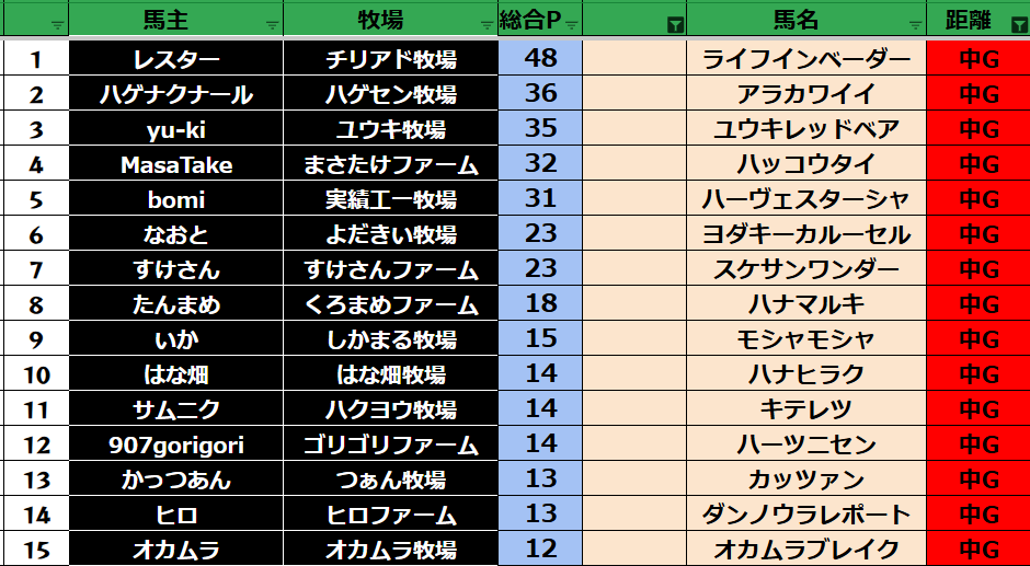 中距離:29頭