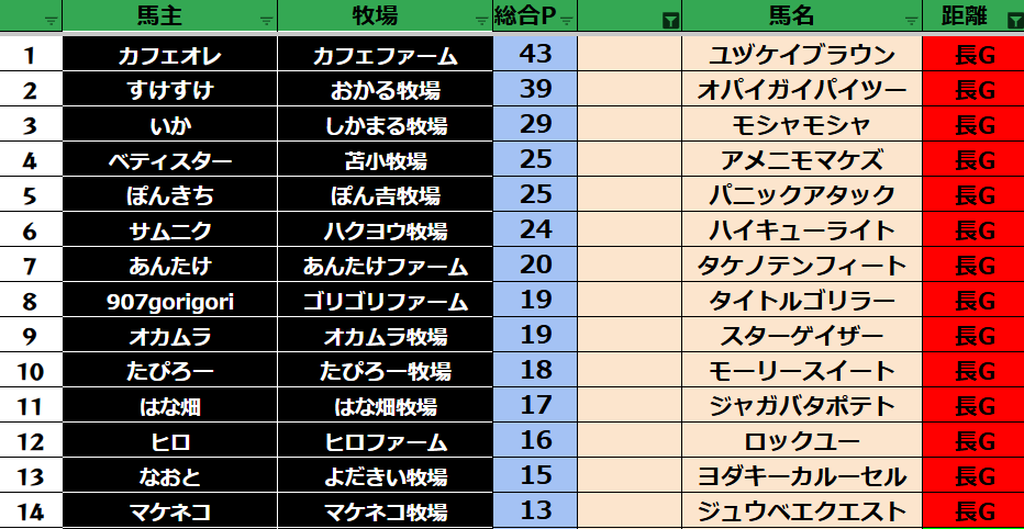 長距離:28頭