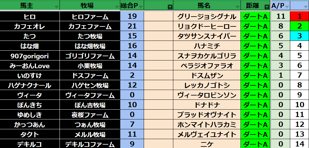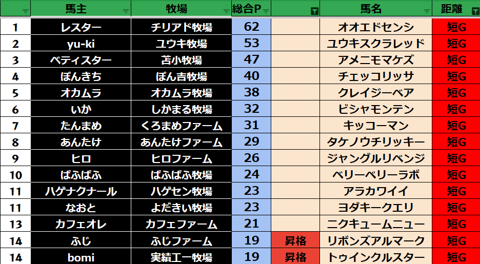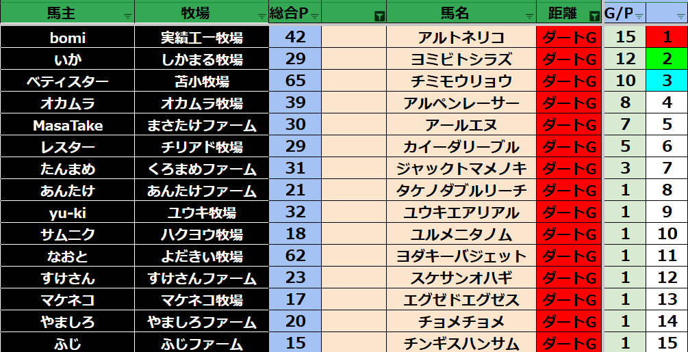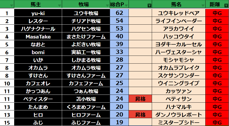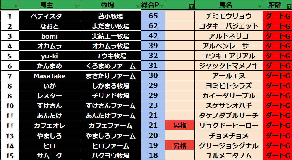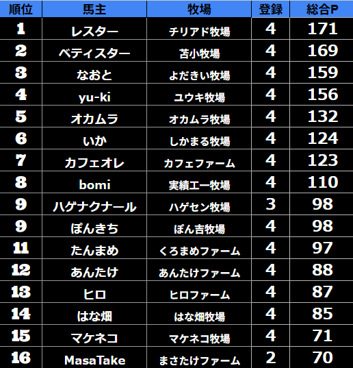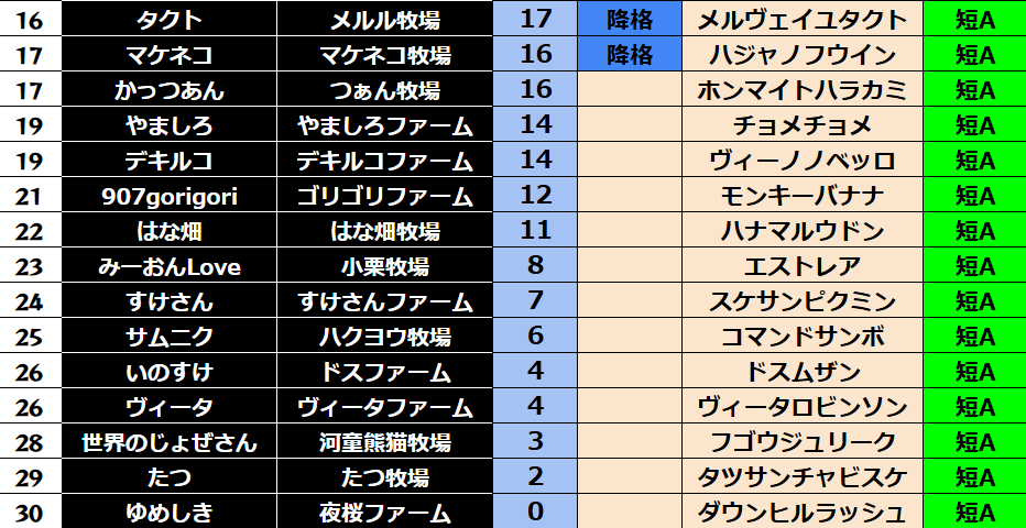 ダビスタ suke3BC season2 クラス振り分け戦 1週目 結果発表! さていよいよ始まりました。 suke3BC season2 7月1週目振り分け戦の 結果発表です! ここで業務連絡です! タクトさん 登録の...
