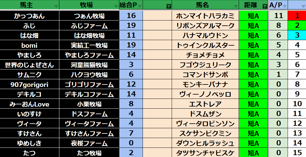 ゲーム ダビスタ 【ダビスタSwitch】suke3BC season6!! 2月2週目 結果発表!! 2026年2月16日 2026年2月16日 Facebook postはてブLINEPocketFeedly それでは先週の結果の方まいります! Contents 【ダート結果】 【ダートランキング】 【短距離結果】 【短距離ランキング】 【中距離結果】 【中距離ランキング】 【長距離結果】 【長距離ランキング】 【馬主総合ランキング】 【ダビクエ的中率】 Facebook postはてブLINEPocketFeedly