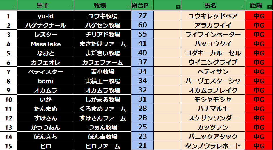 ダビスタ 【ダビスタSwitch】suke3BC season6 2月3週目 クラス振り分け確定! それでは今週の振り分けです! 参加馬主:33名 全登録馬:116頭 ダート:29頭 短距離:30頭 中距離:29頭 長距離:28頭 【ダー...