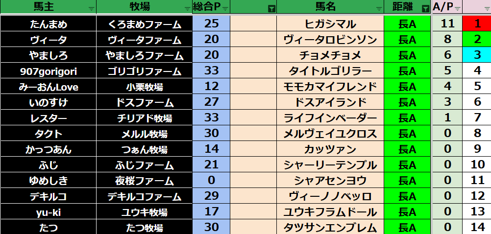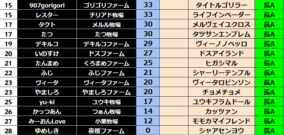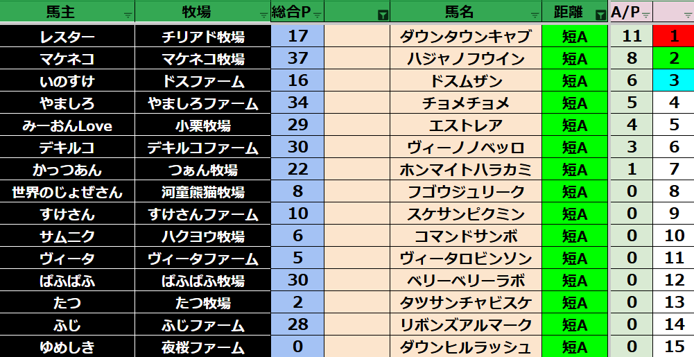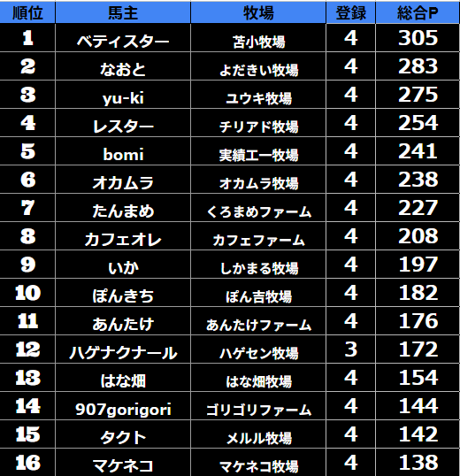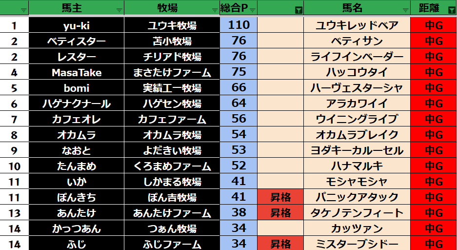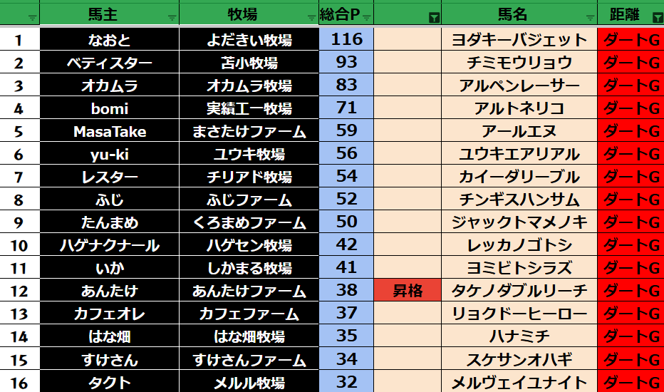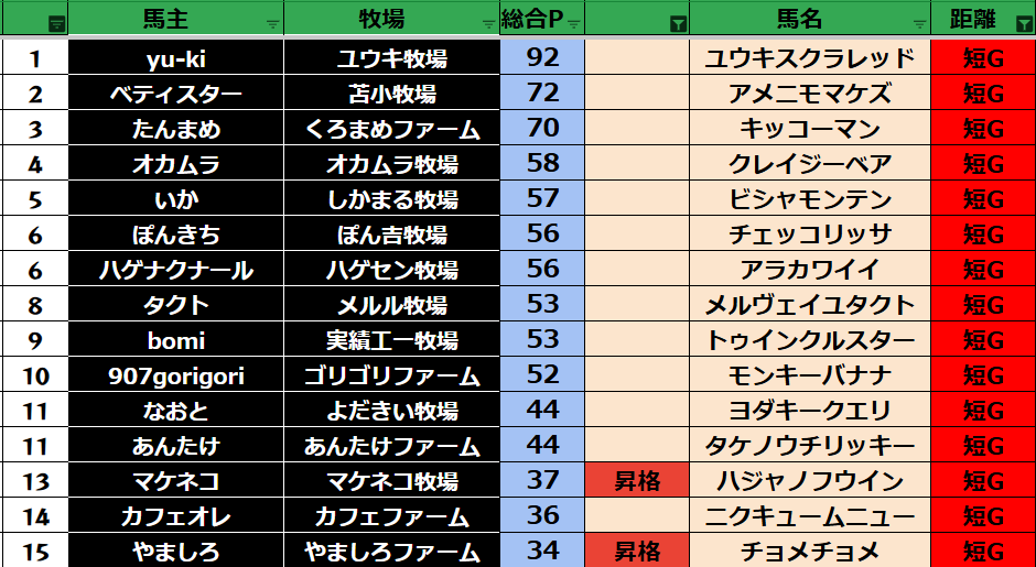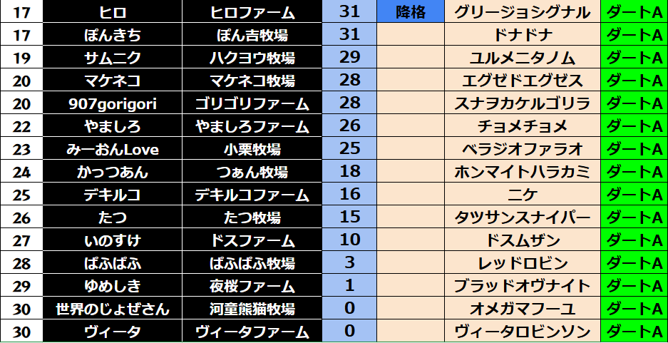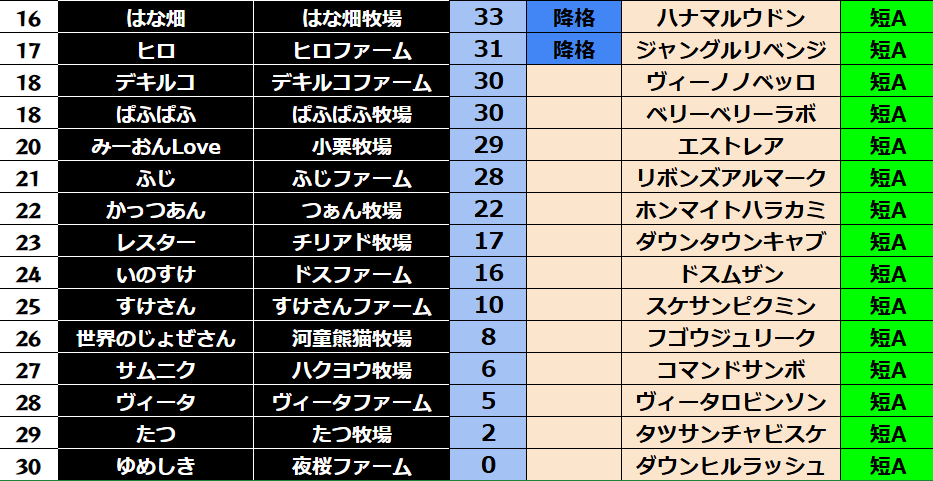 ダビスタ 【ダビスタSwitch】suke3BC season5 予選1週目 クラス振り分け確定! 皆さん大変お待たせいたしました! いよいよ本日からseason5が開幕いたします! 今シーズンもよろしくお願いします! 参加馬主:33名 全...