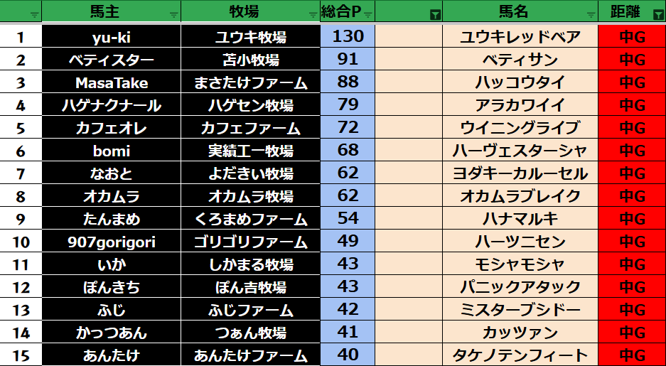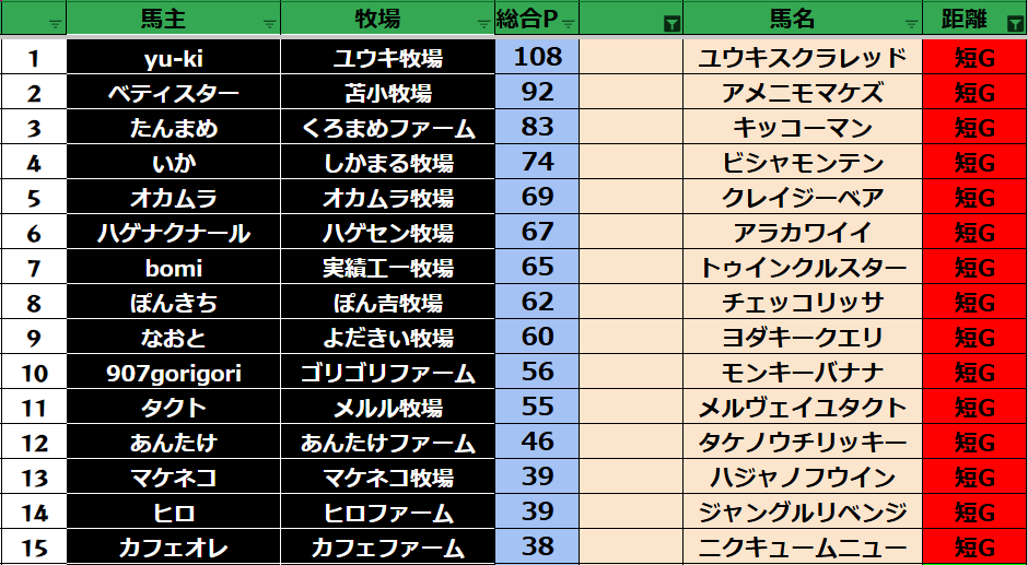ダビスタ 【ダビスタSwitch】suke3BC season2 2022年最終戦結果発表! 今週もご視聴ありがとうございました! それでは2022年最終戦の結果発表です! 【短距離結果】 【短距離ランキング】 【中距離結果】...