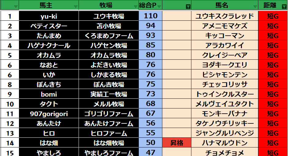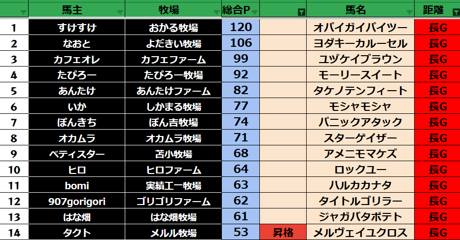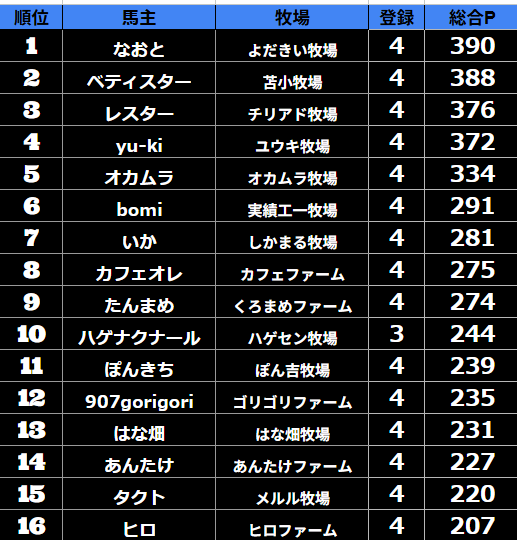 ダビスタ 【ダビスタSwitch】suke3BC season5!! 予選3週目 結果発表!! さぁ予選3週目が終わりました! 今年もあとわずかですね。 次回の予選で最終戦になります! 次回の予選はポイントごとにクラス分けをして 実質ラ...