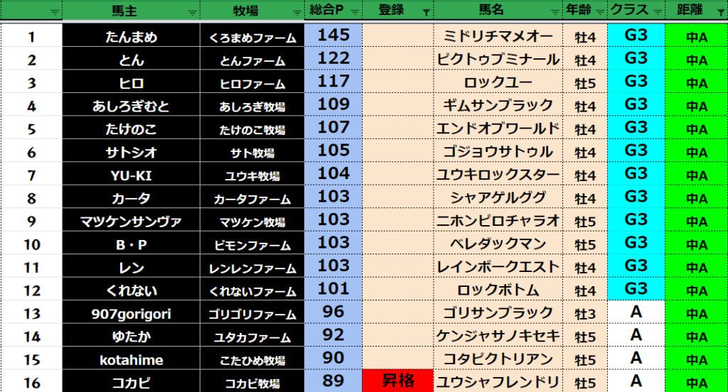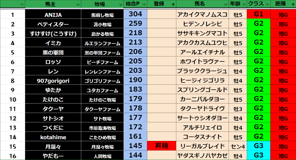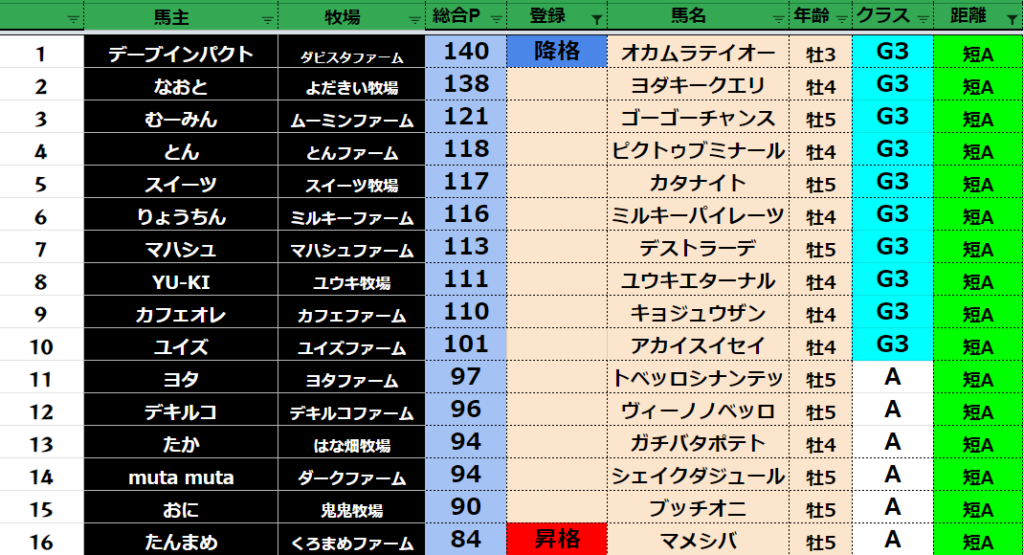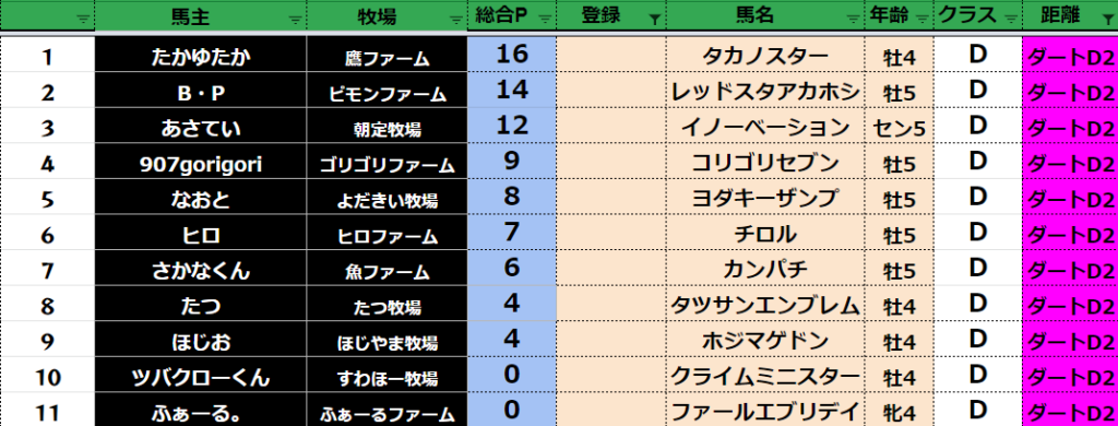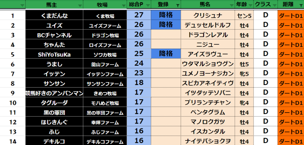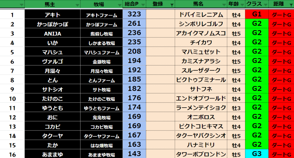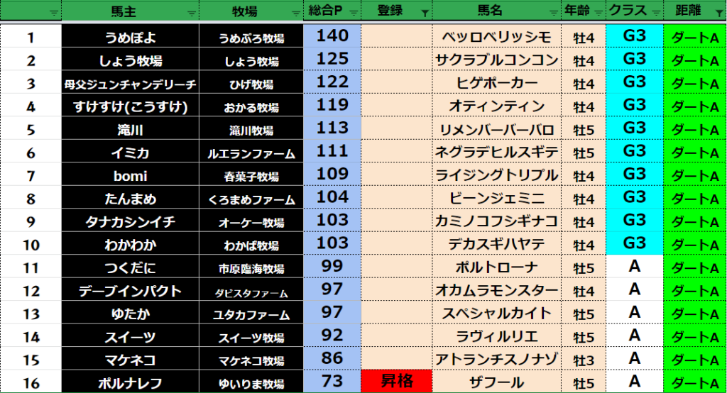 【ダートクラス】