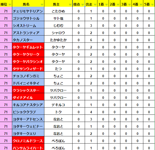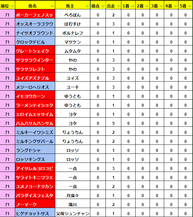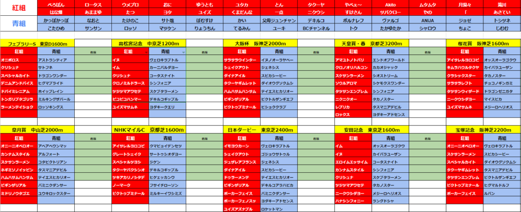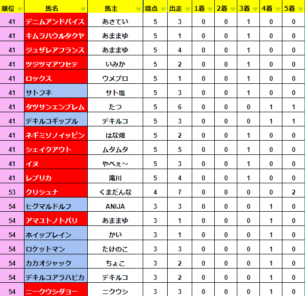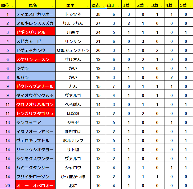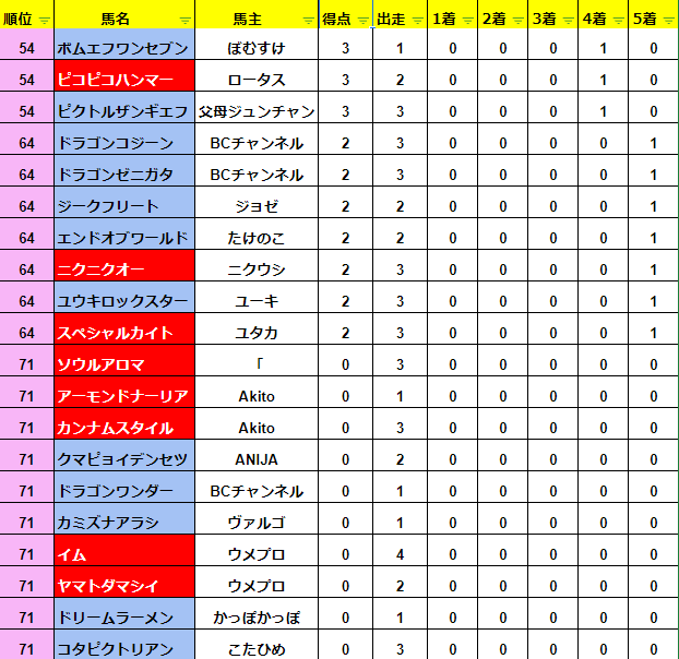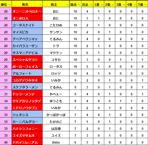 レース結果はこのようになりました!結果に応じてptを振り分けさせていただきました!