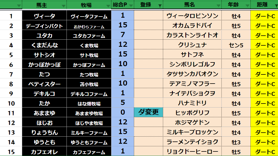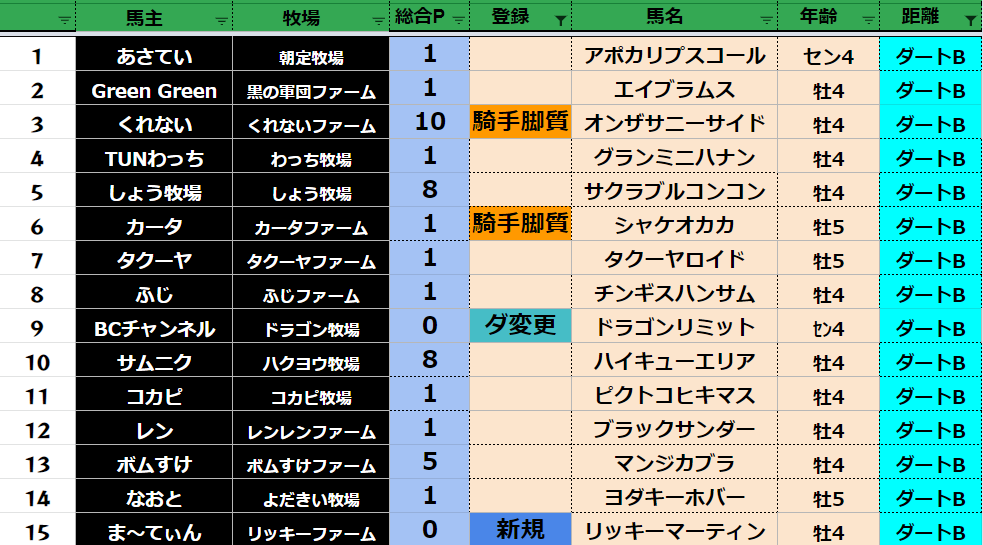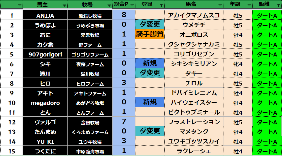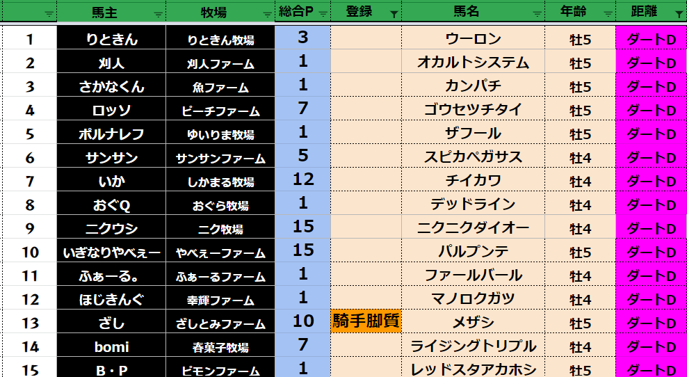 全登録馬:303頭