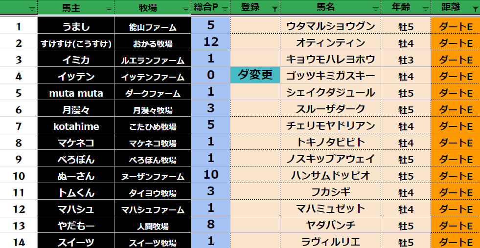 ダート:74頭