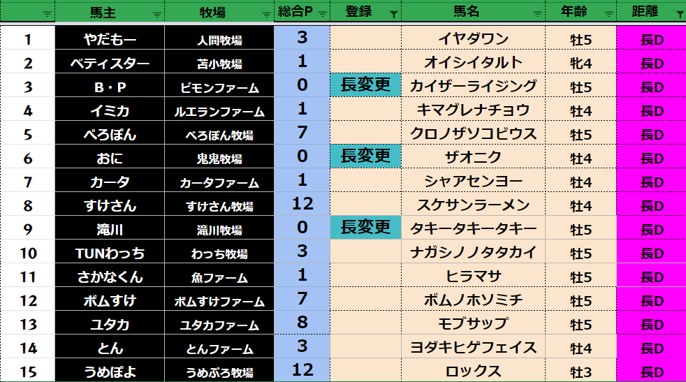 長距離:76頭