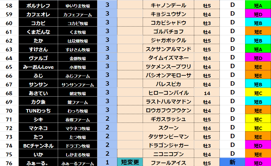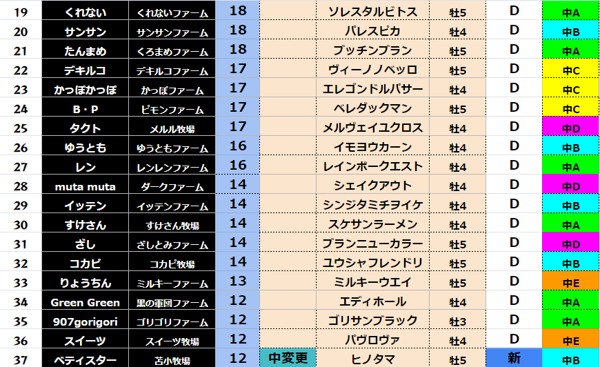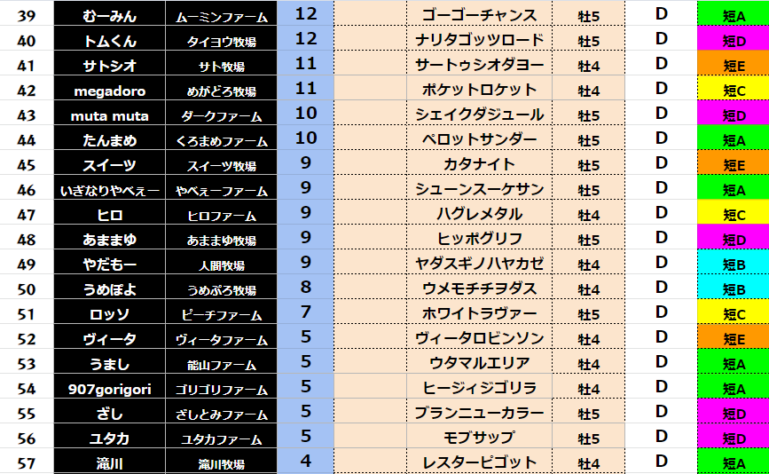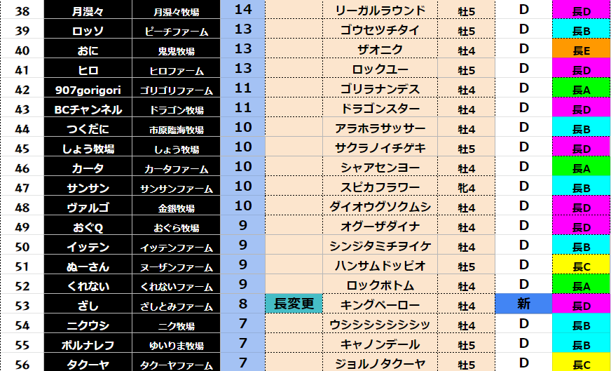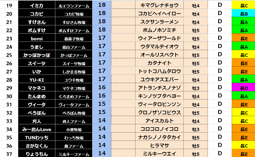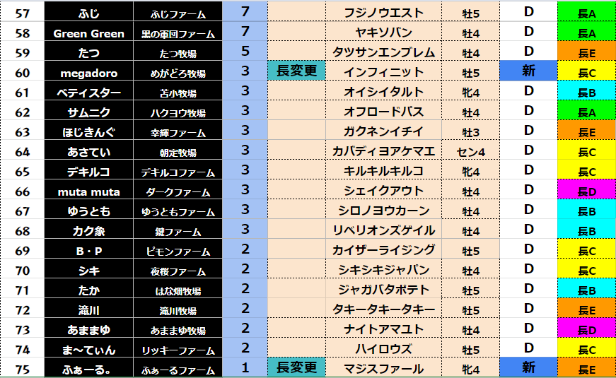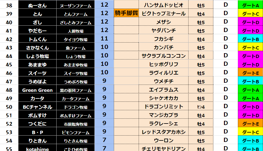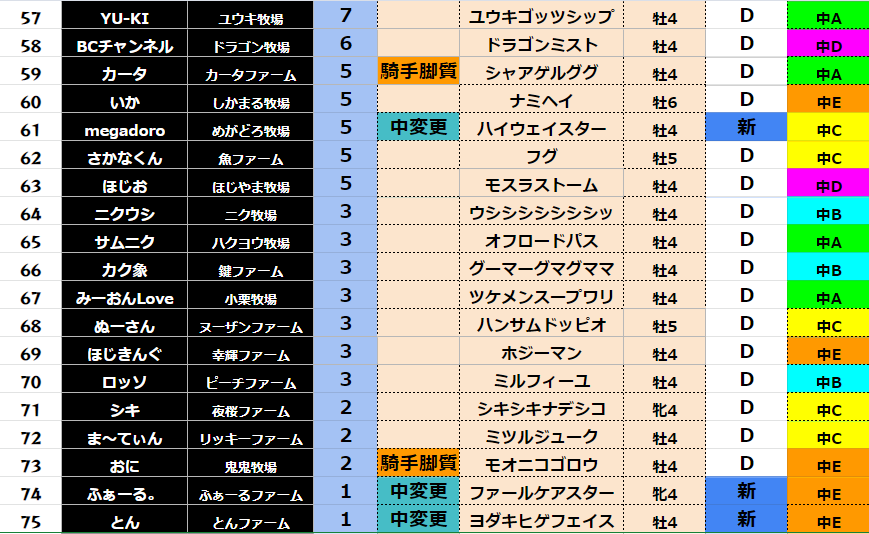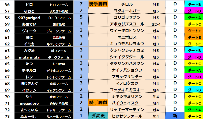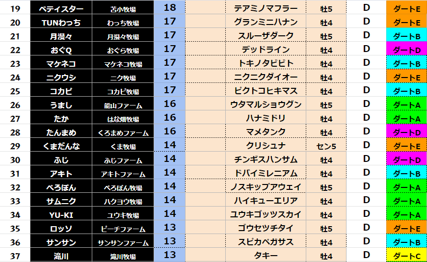 【ダート各クラス結果】
