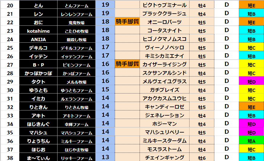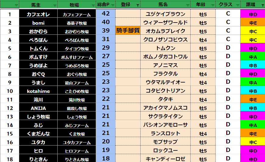 【中距離総合ポイント】