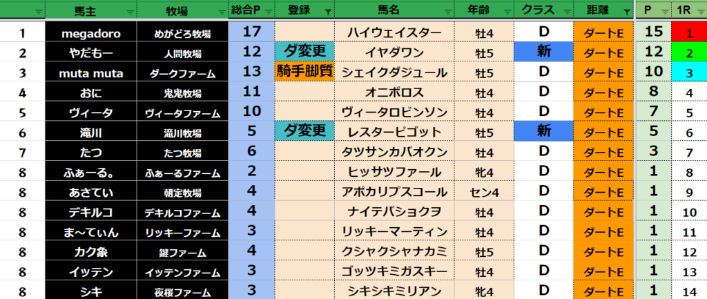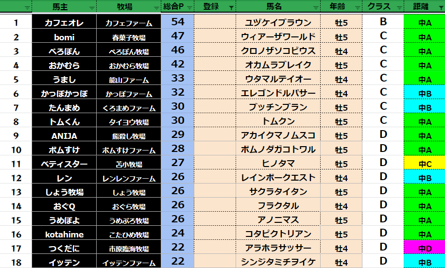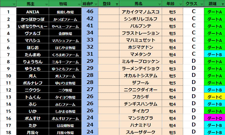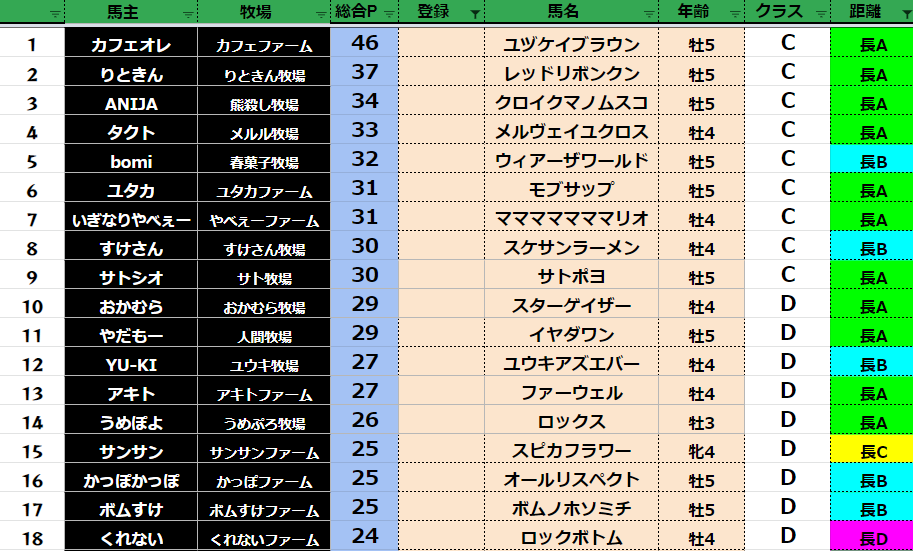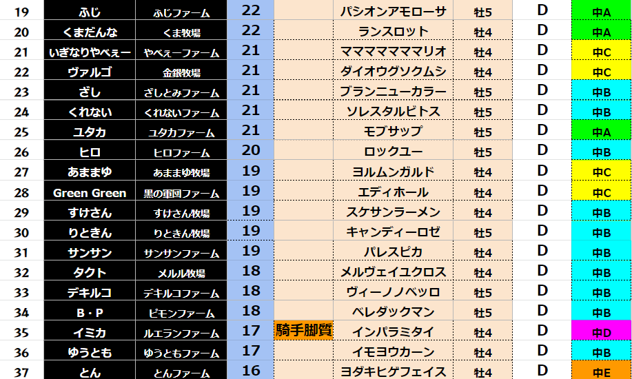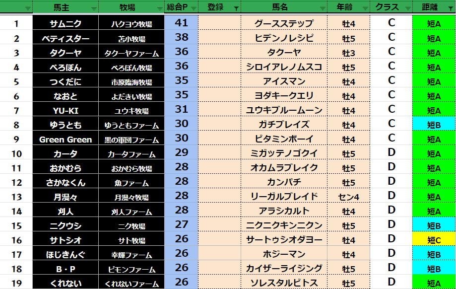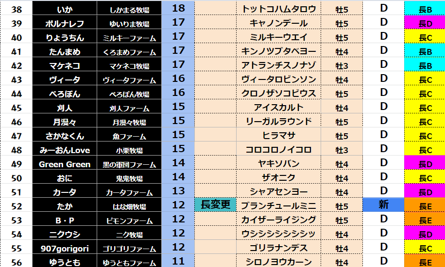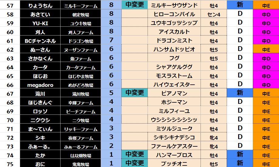 ダビスタ 【ダビスタSwitch】suke3BC season4 7月2週目 クラス振り分け確定! 遅くなりました! 7月2週目のクラス分けになります! 【ダート】 【短距離】 【中距離】 【長距離】...