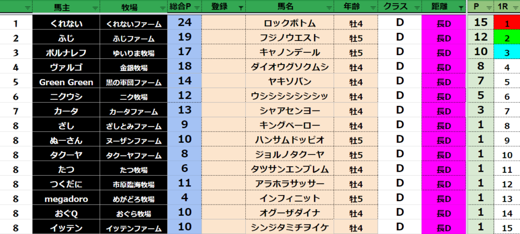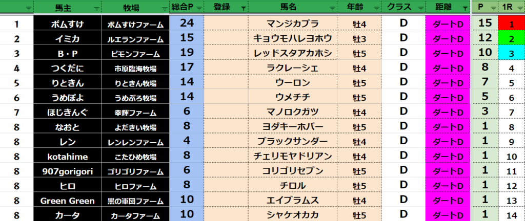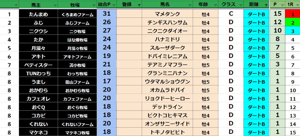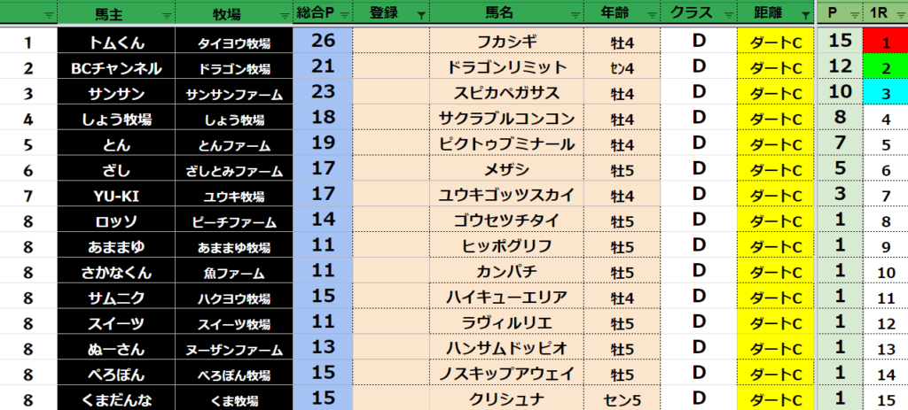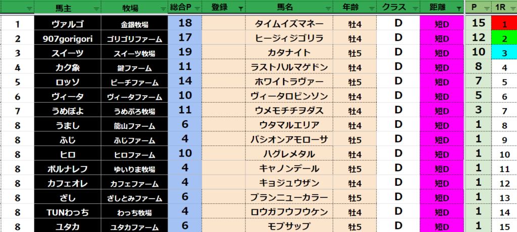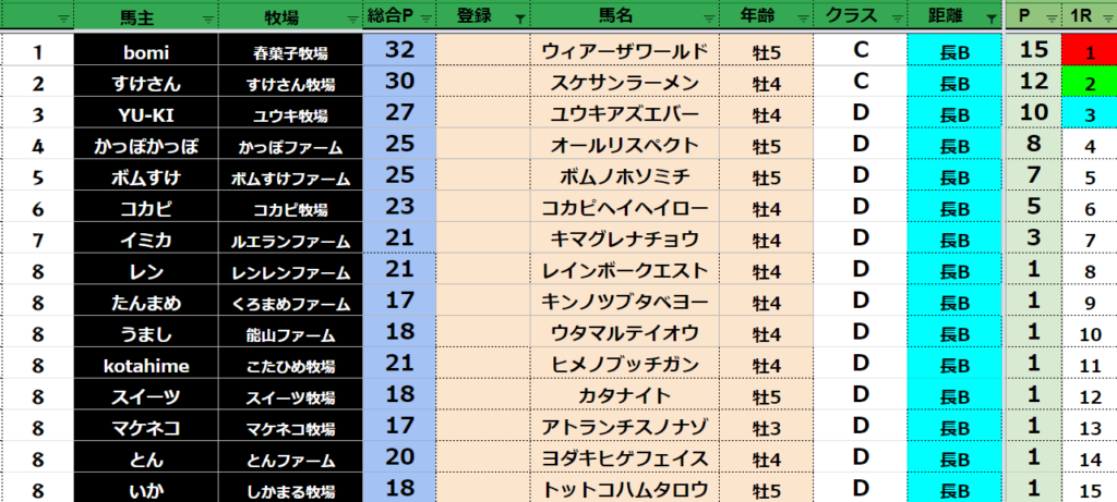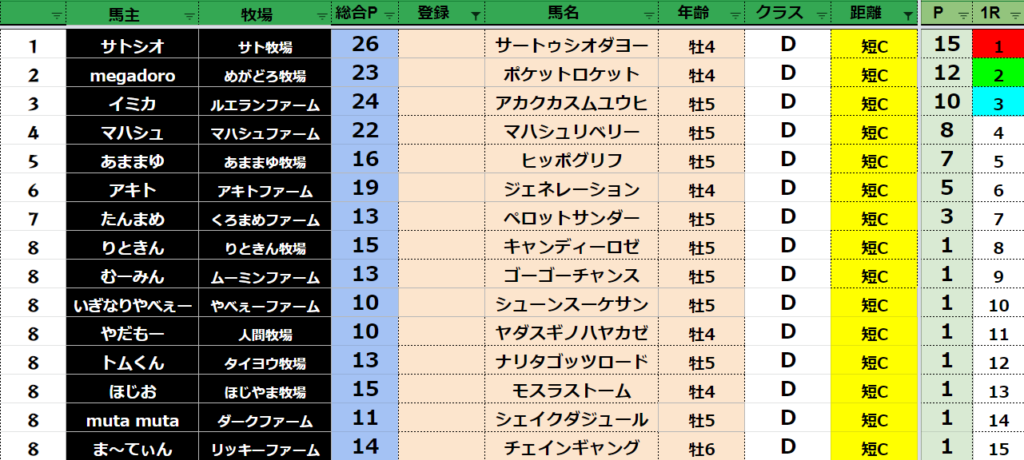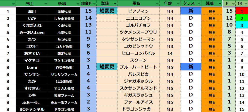 ゲーム ダビスタ 【ダビスタSwitch】suke3BC season2 クラス振り分け戦 4週目 結果発表! 2022年7月31日 2022年11月20日 Facebook postはてブLINEPocketFeedly さて7月4週の結果になります! Contents 【短距離各クラス結果】 【短距離総合ポイント】 【中距離各クラス結果】 【中距離総合ポイント】 【長距離各クラス結果】 【長距離総合ポイント】 【ダート各クラス結果】 【ダート総合ポイント】 Facebook postはてブLINEPocketFeedly