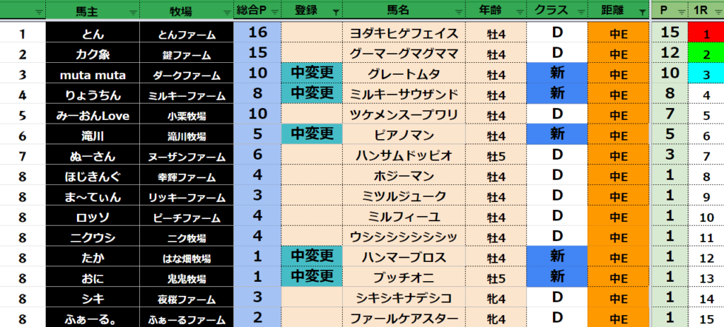 Uncategorized 【ダビスタSwitch】suke3BC season3 最終戦 結果発表! さぁ振り分け戦が無事に終わりました。 いよいよ本日からリーグ戦開幕になります! よろしくお願いします! まずは振り分け戦の結果からどうぞ! ...