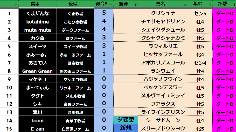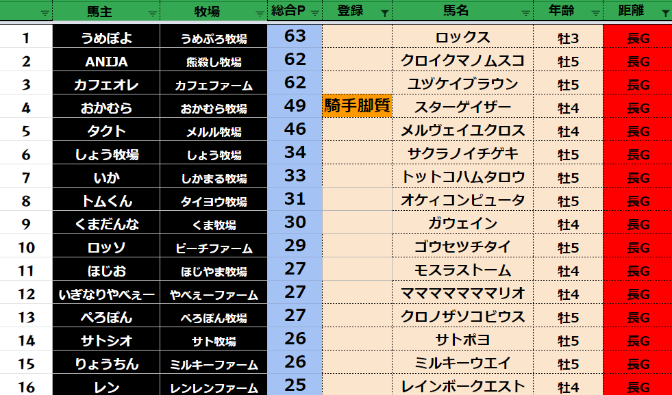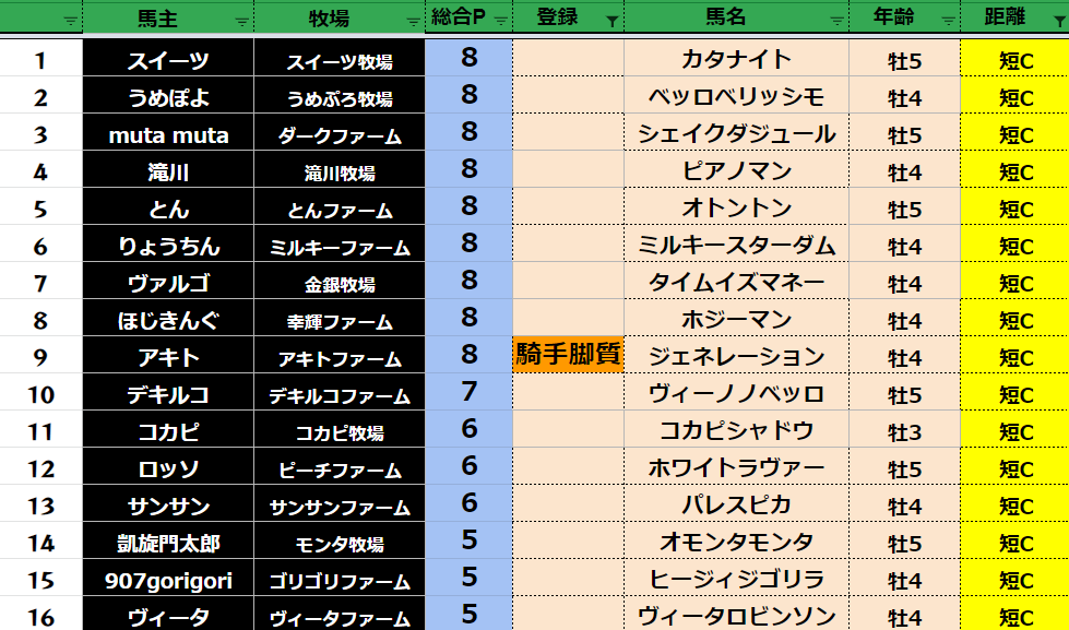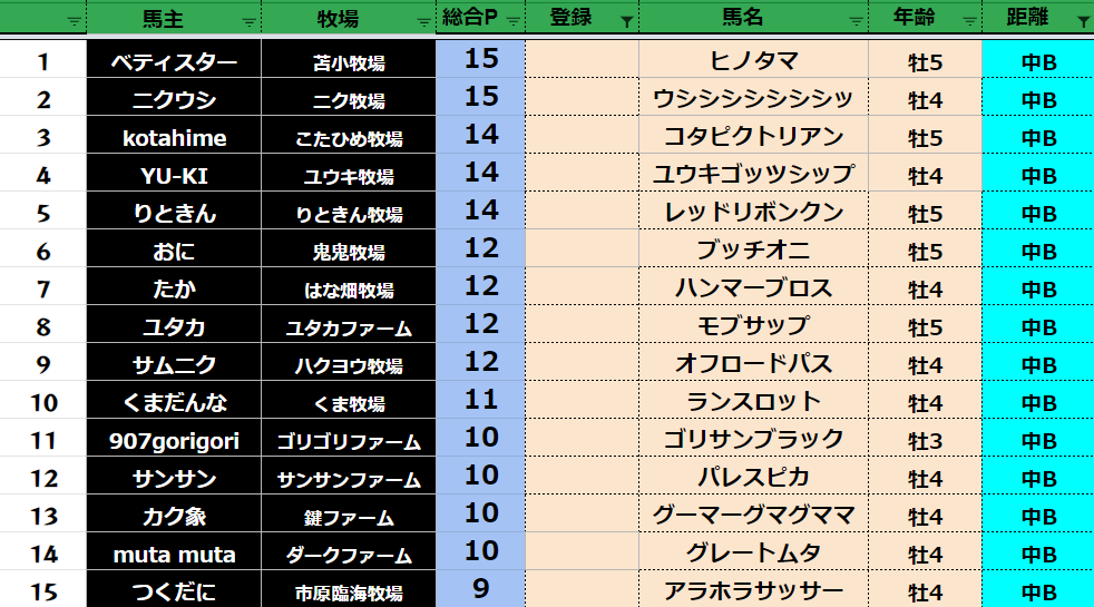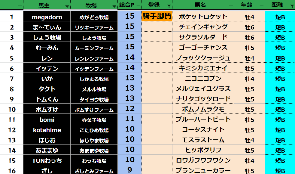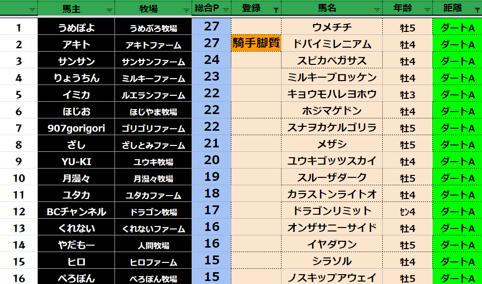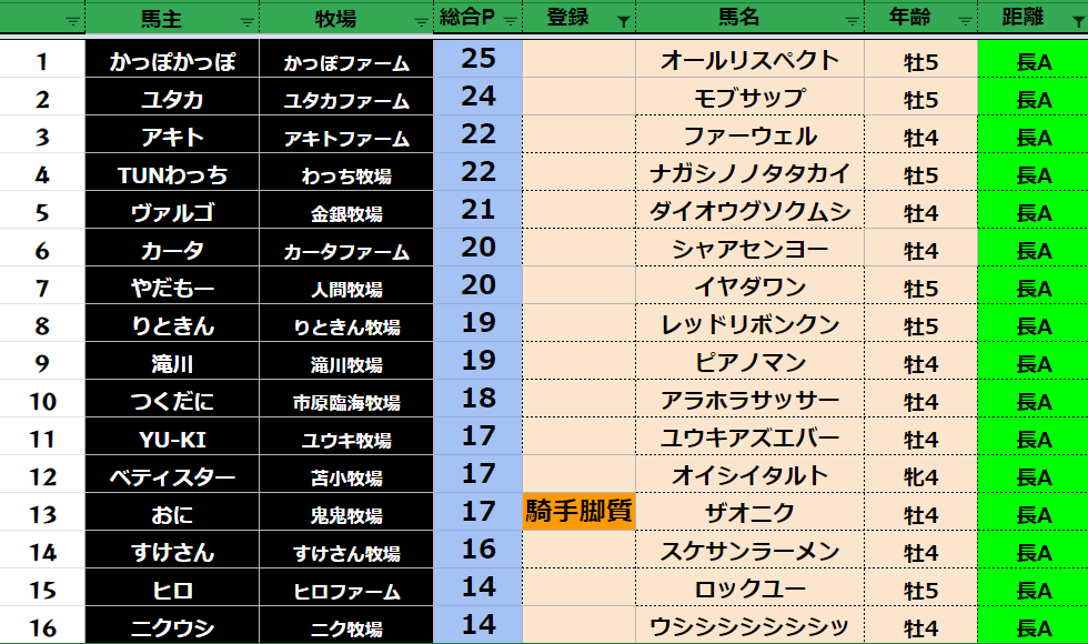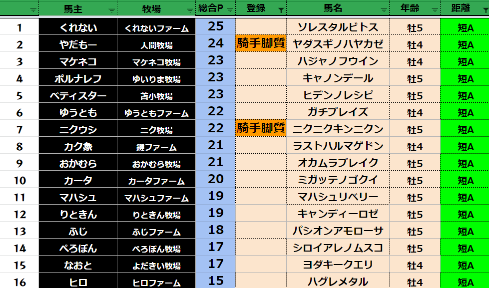 クラス・馬主ランクに多少の変動があるかもしれません。