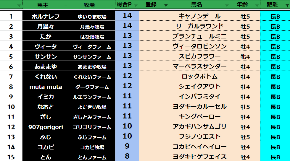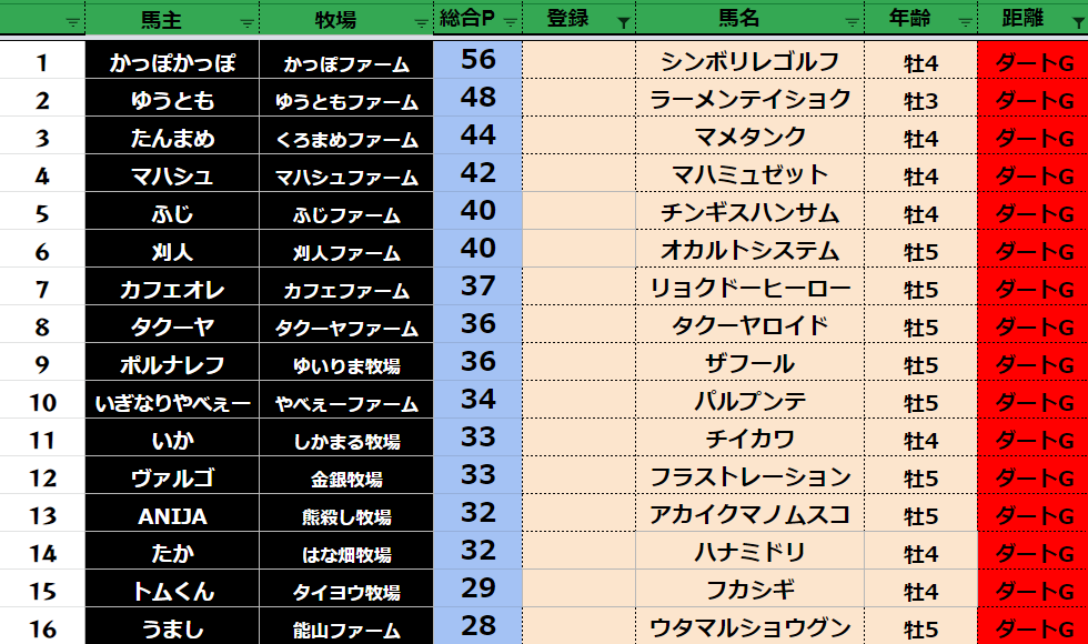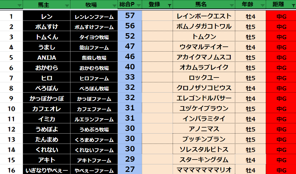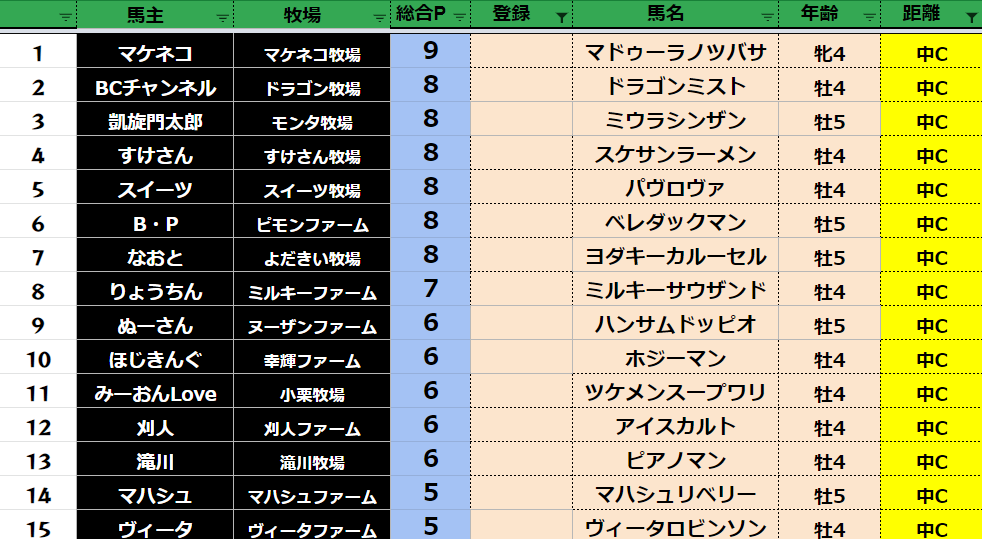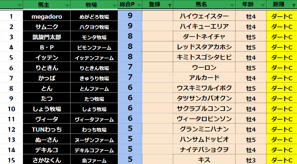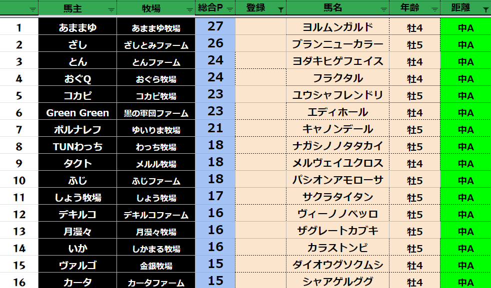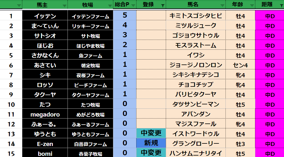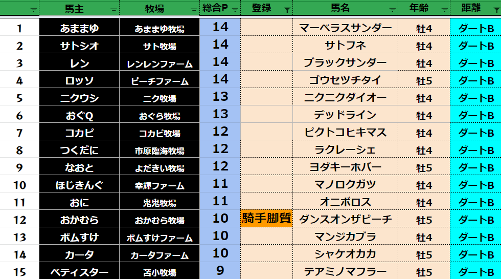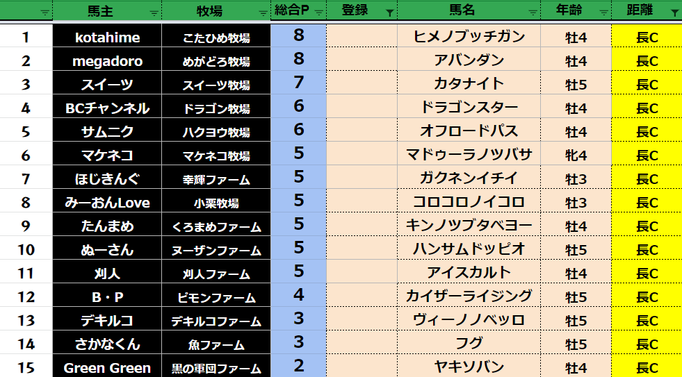 クラス・馬主ランクに多少の変動があるかもしれません。