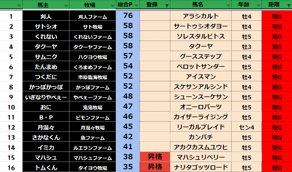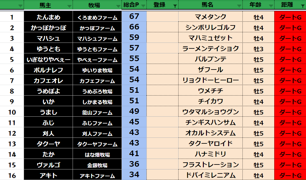 【ダートランキング】