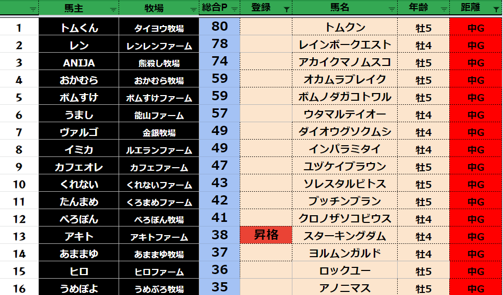 【中距離ランキング】