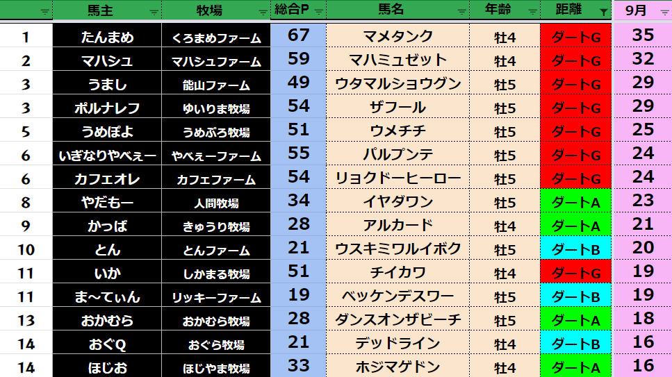 【ダート9月ランキング】