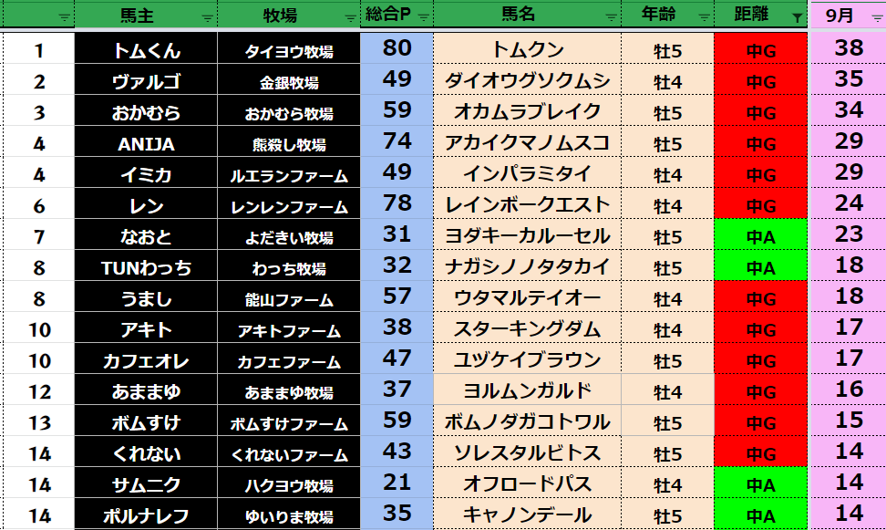【中距離9月ランキング】