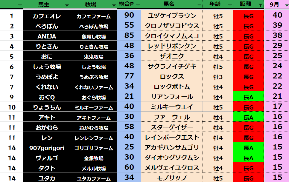 【長距離9月ランキング】