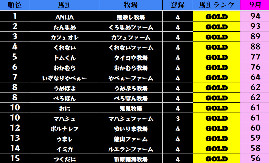 【9月馬主ランキング】