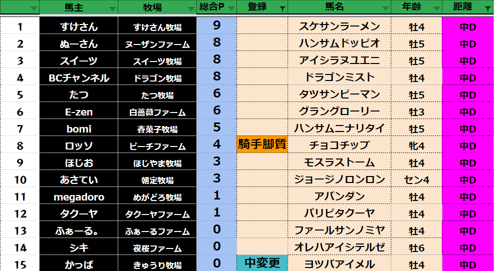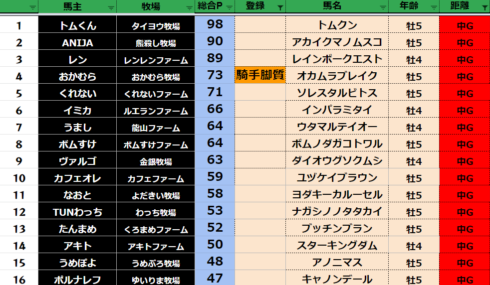 中距離:78頭