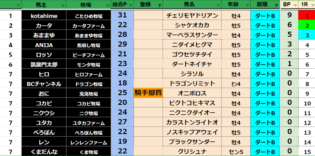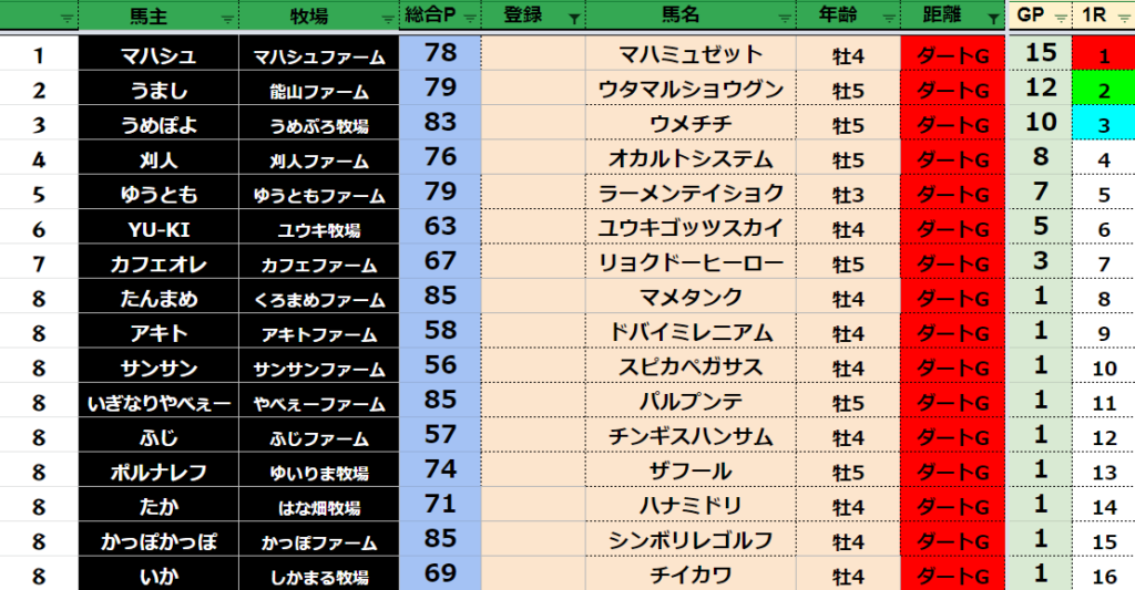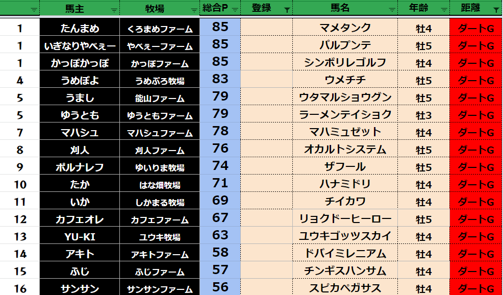 【ダートランキング】