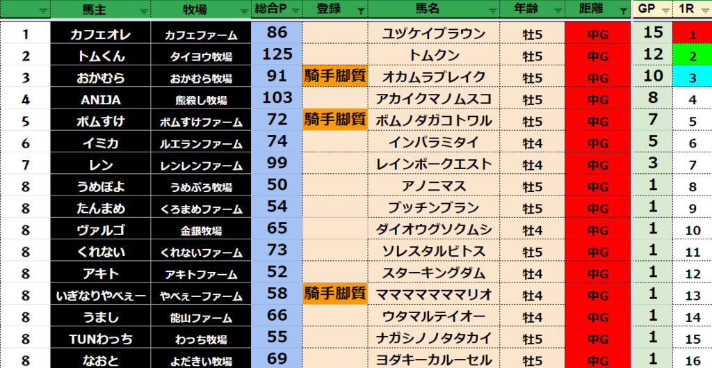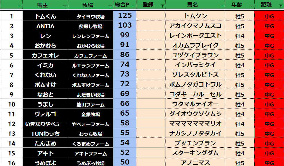 【中距離ランキング】