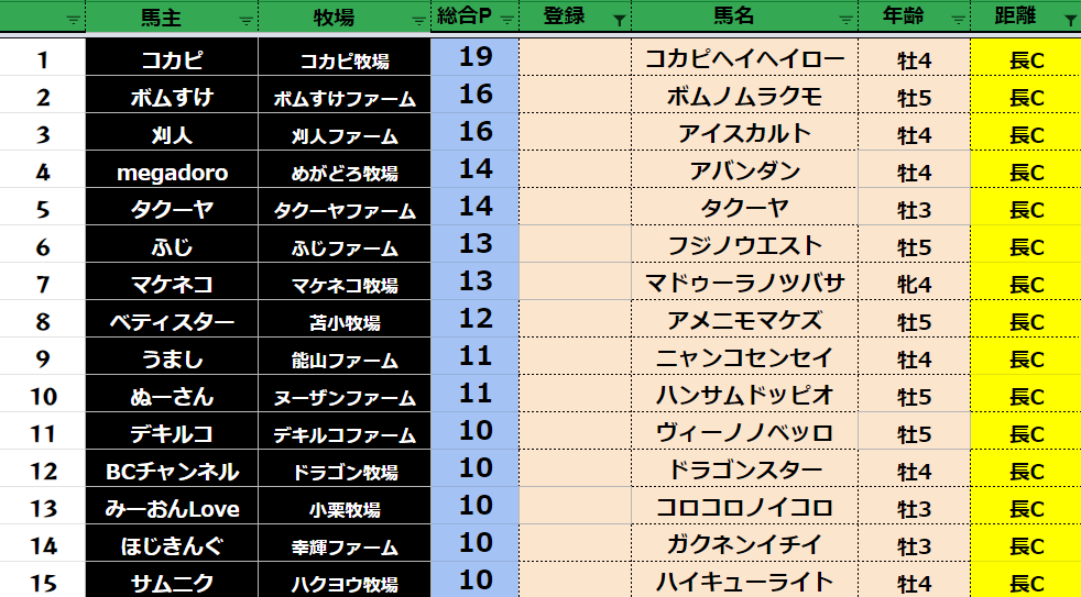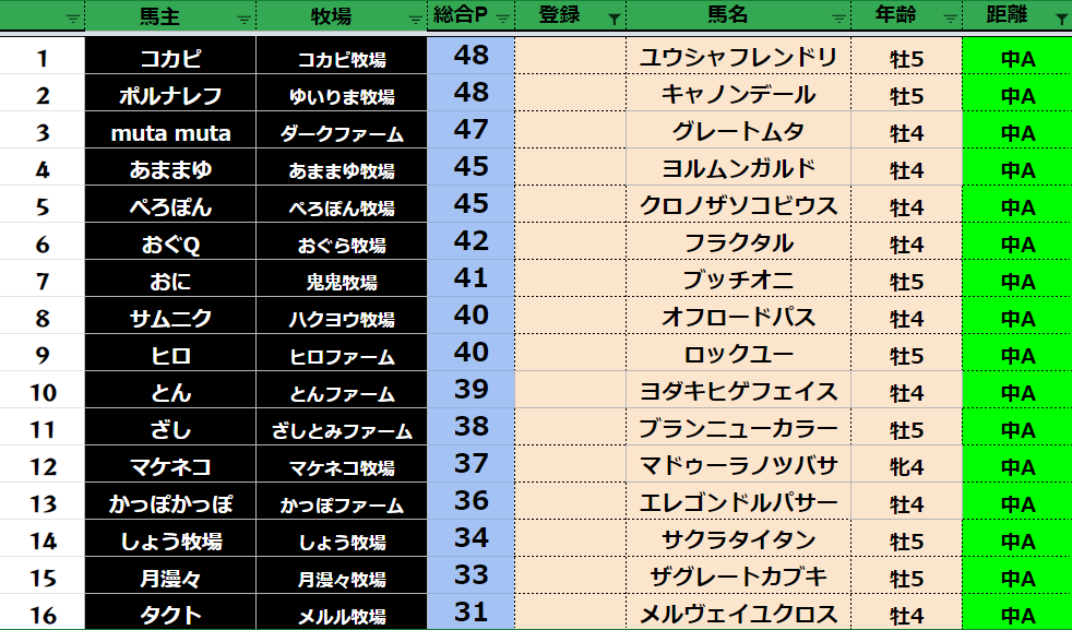 全登録馬:311頭