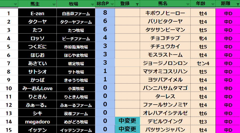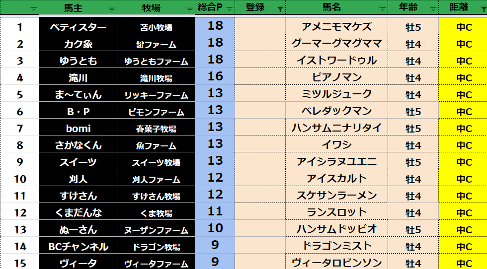 中距離:78頭