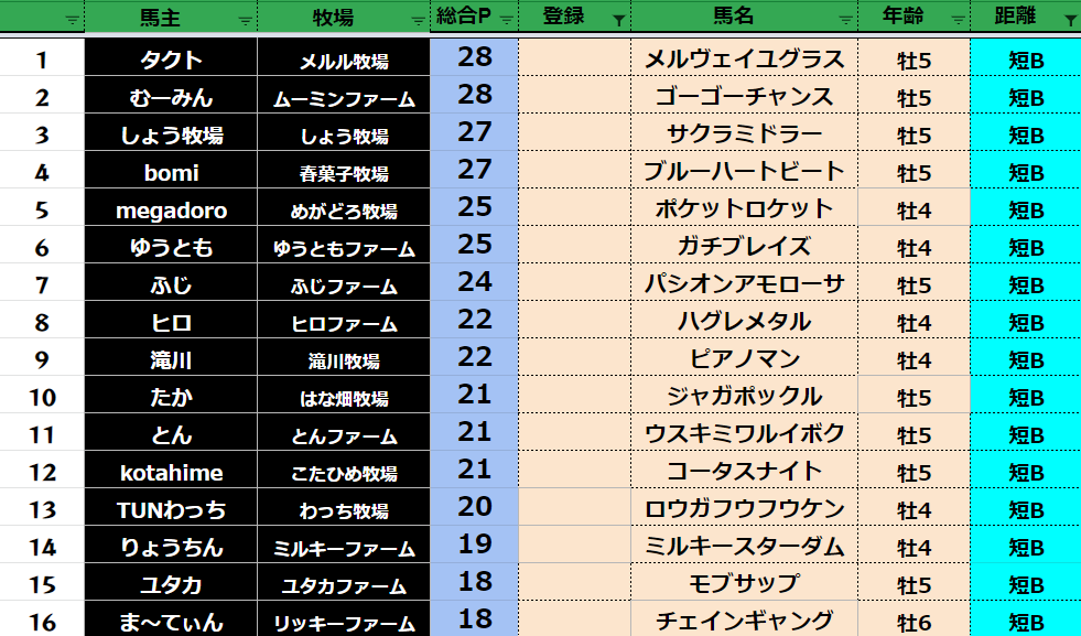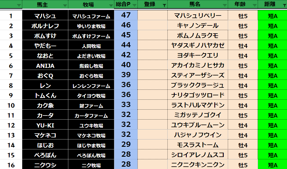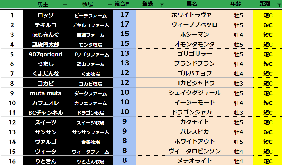 短距離:79頭
