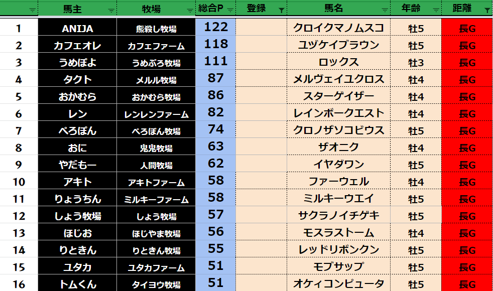 長距離:77頭
