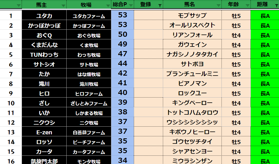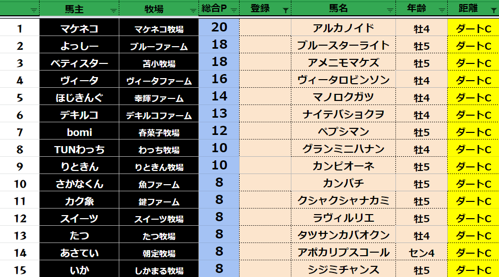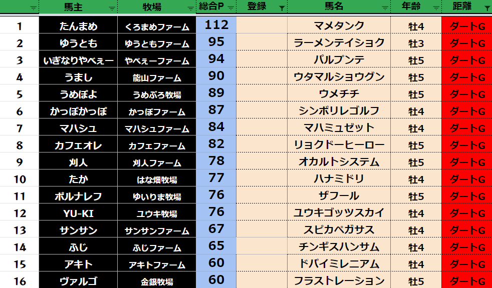 全登録馬:311頭