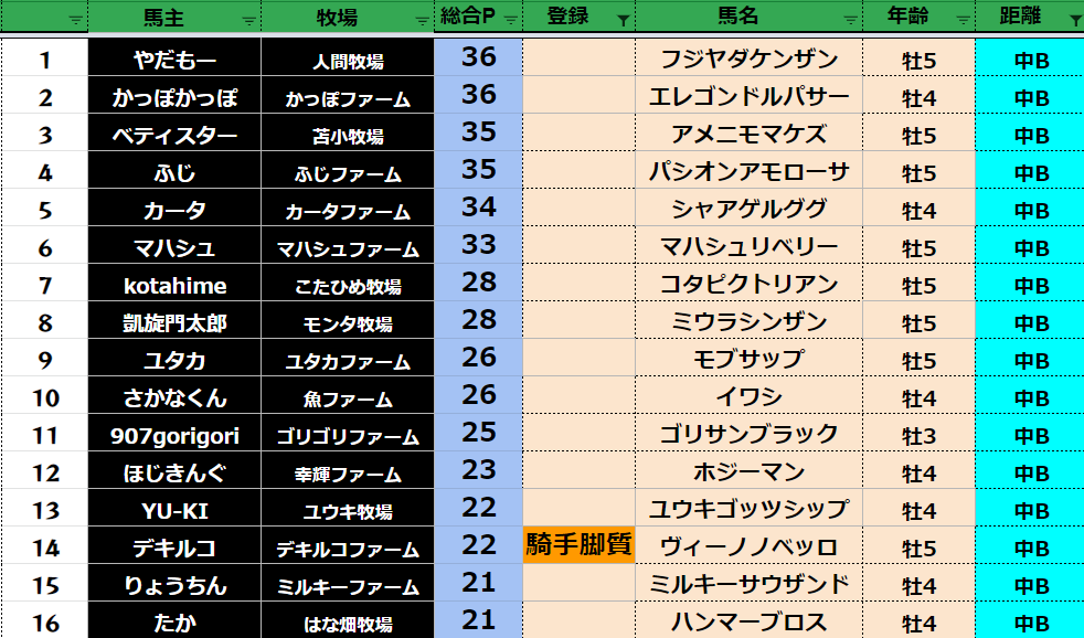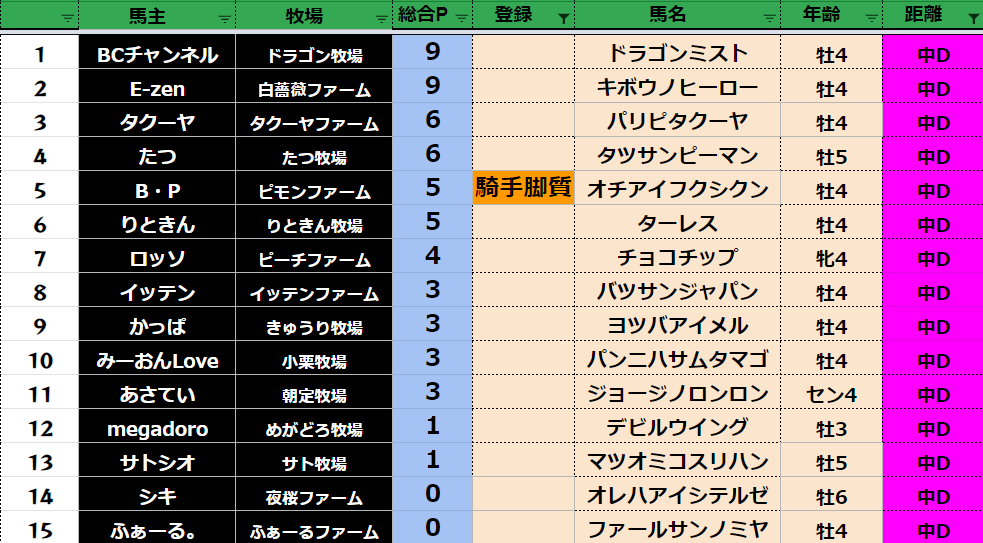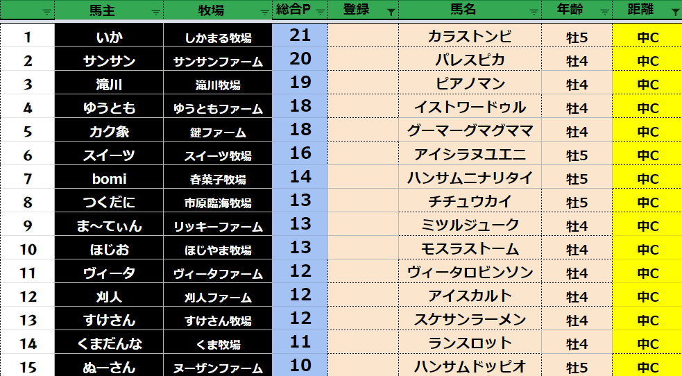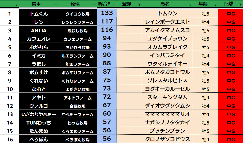 中距離:78頭