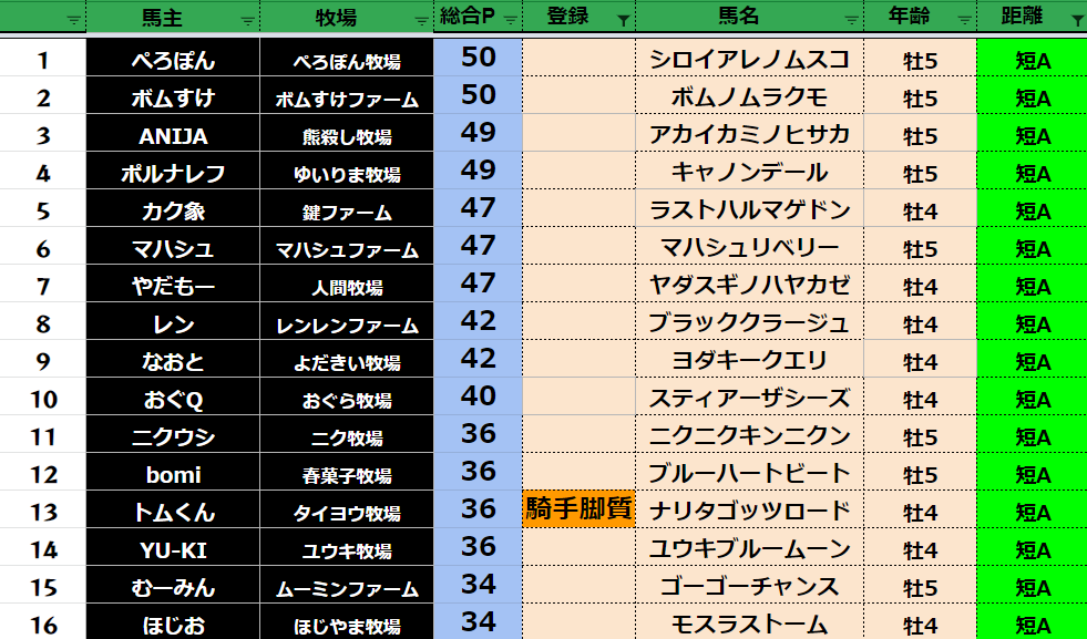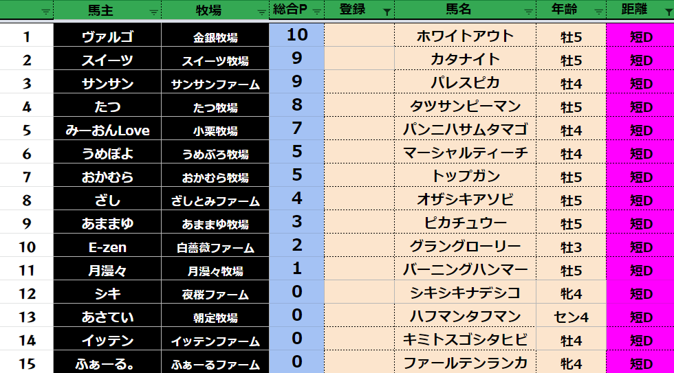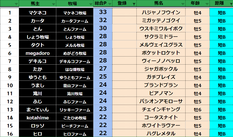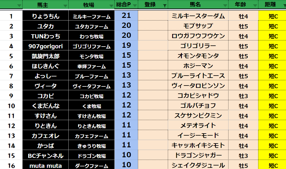 短距離:79頭