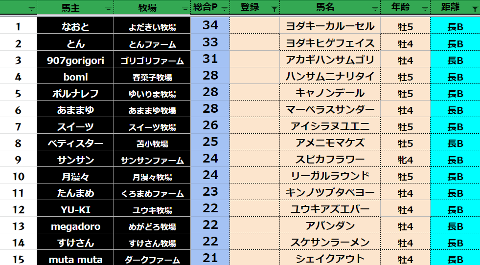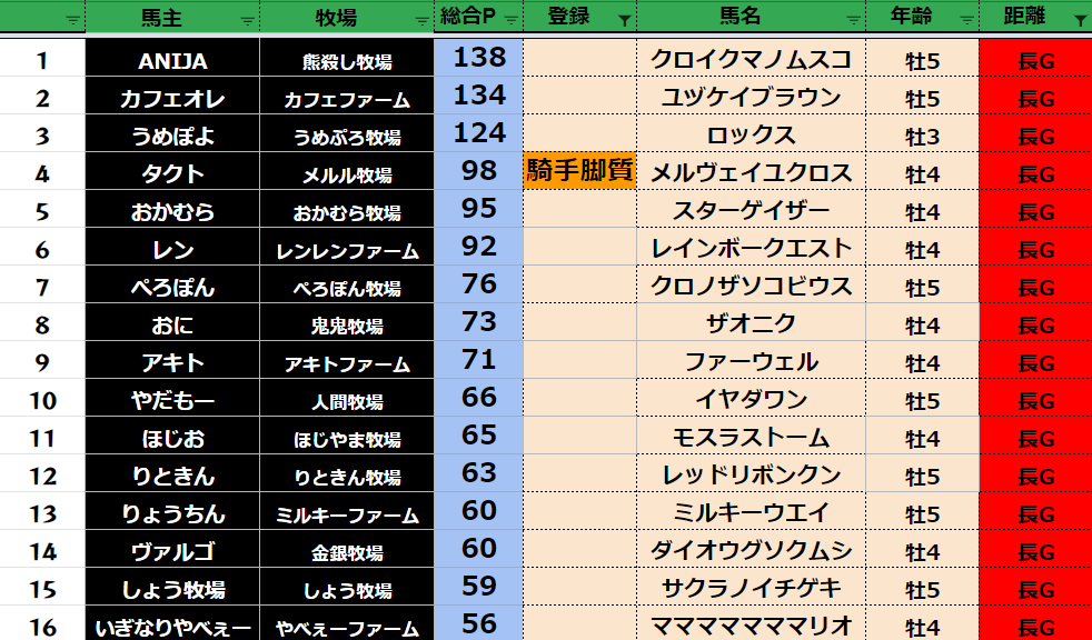 長距離:77頭