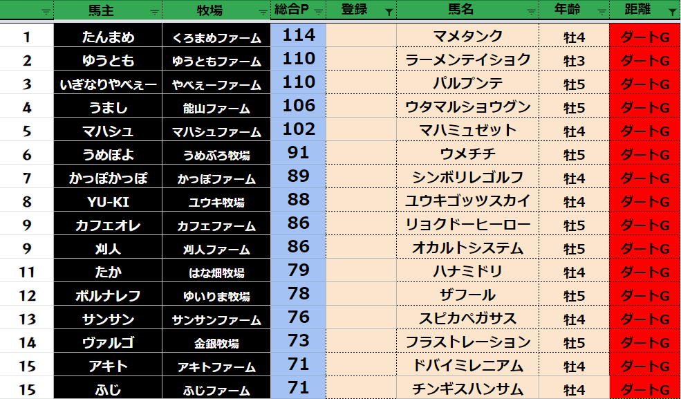 【ダートランキング】