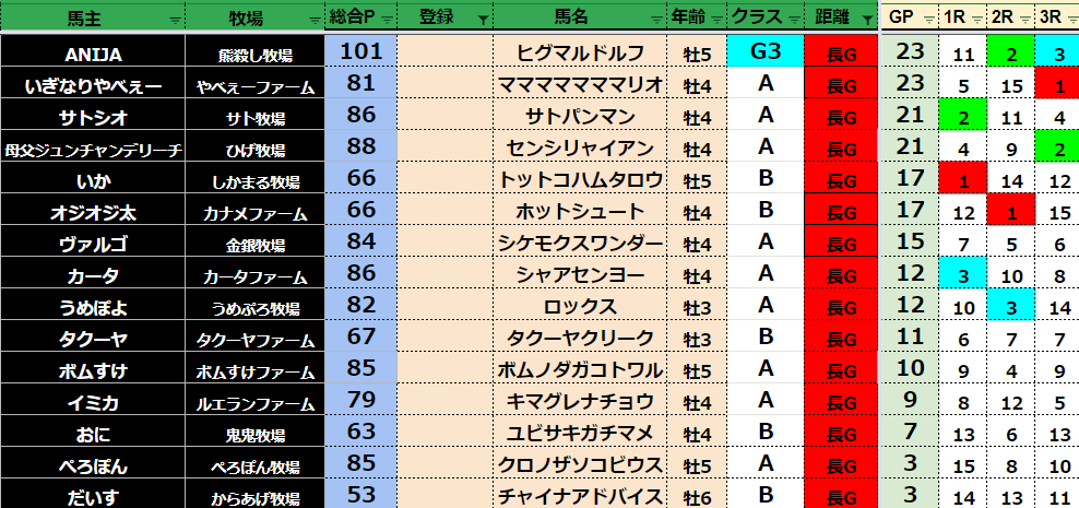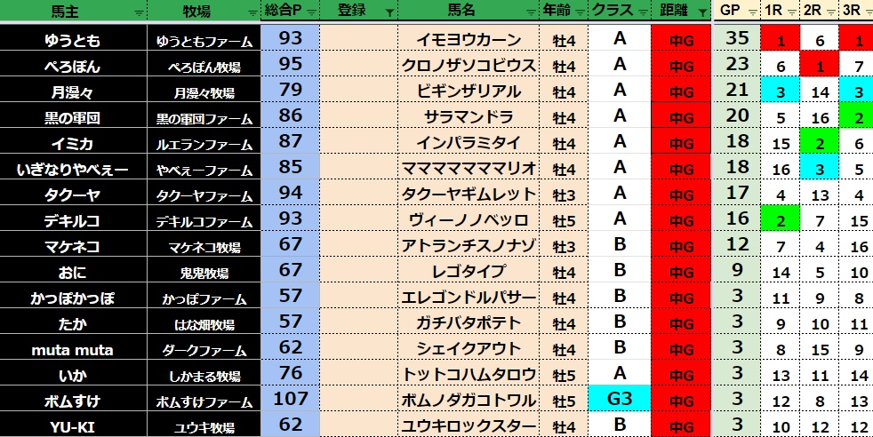 全体的に見てもAクラスはいい戦いをしているように見えます!この中からGクラスに上がり総合順位上位に入る馬はいったいどの馬なのか!楽しみです!