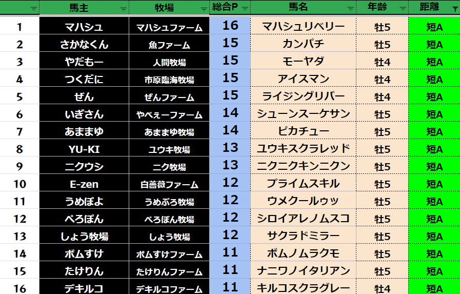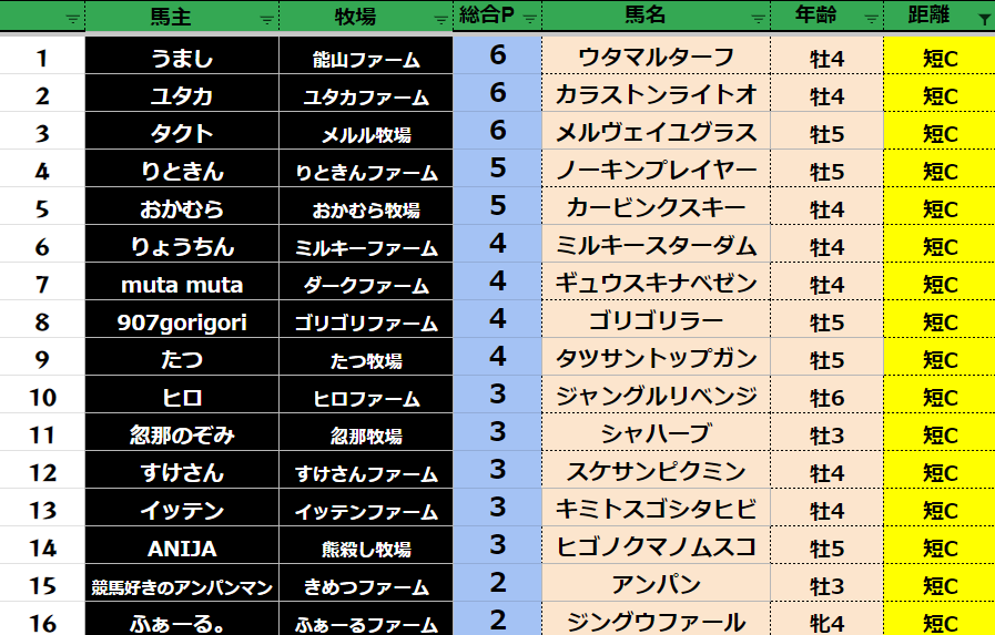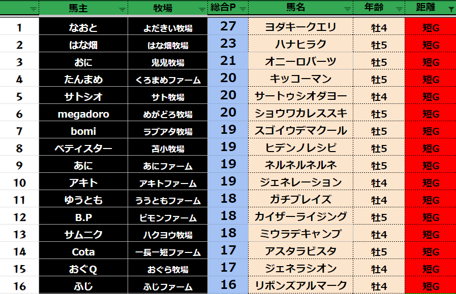 短距離:64頭