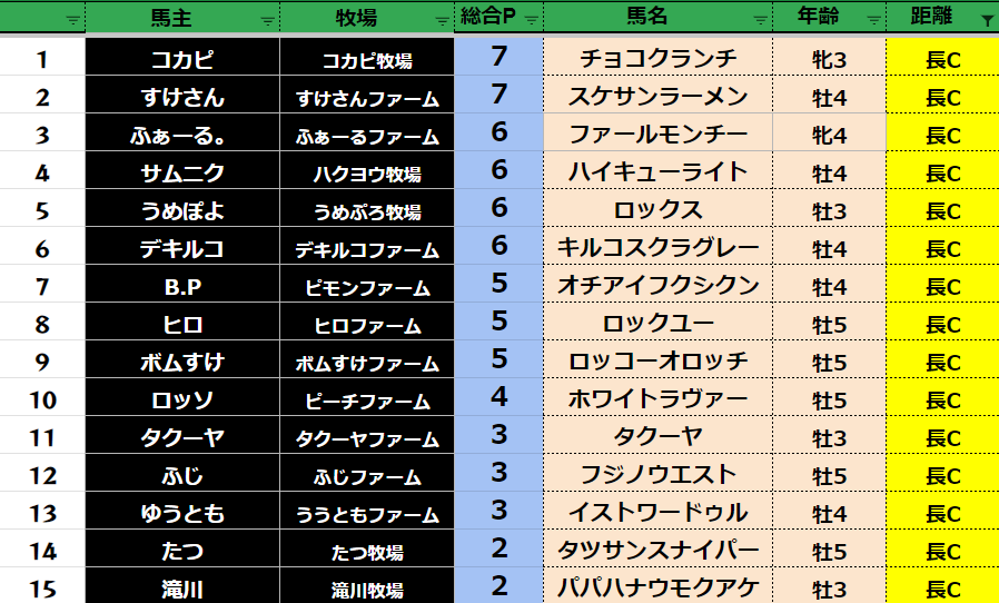 クラス毎のポイント表はコチラ
