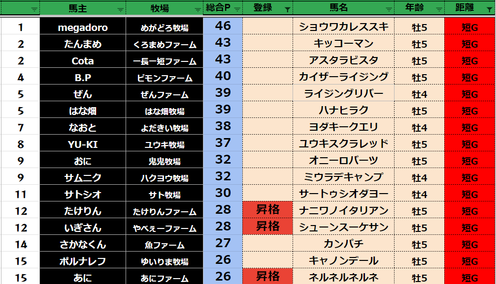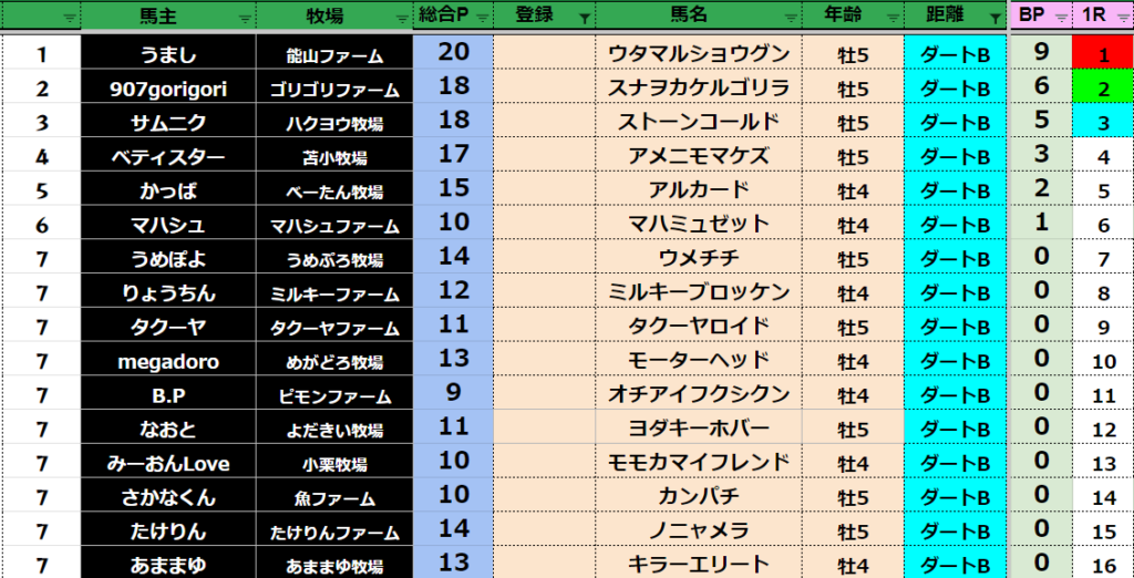 【ダートランキング】